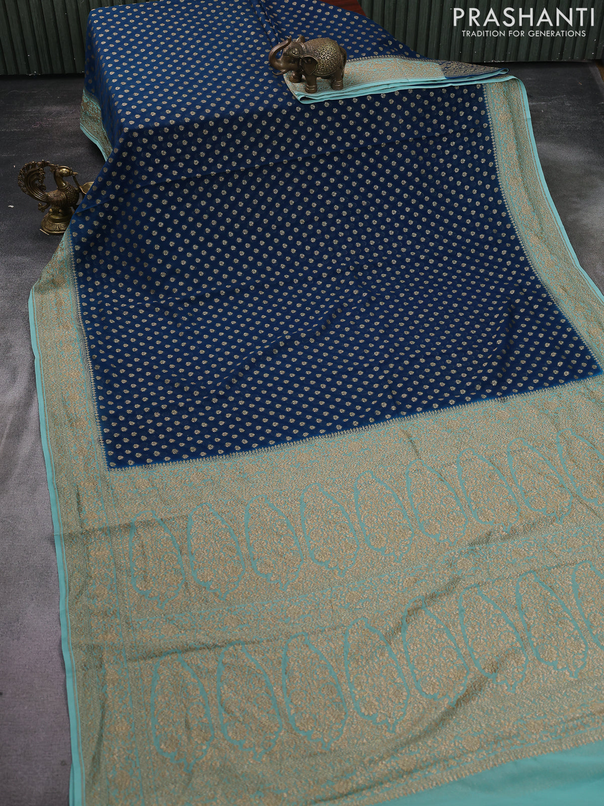 Banarasi georgette saree peacock blue and teal blue with allover woven buttas and woven border