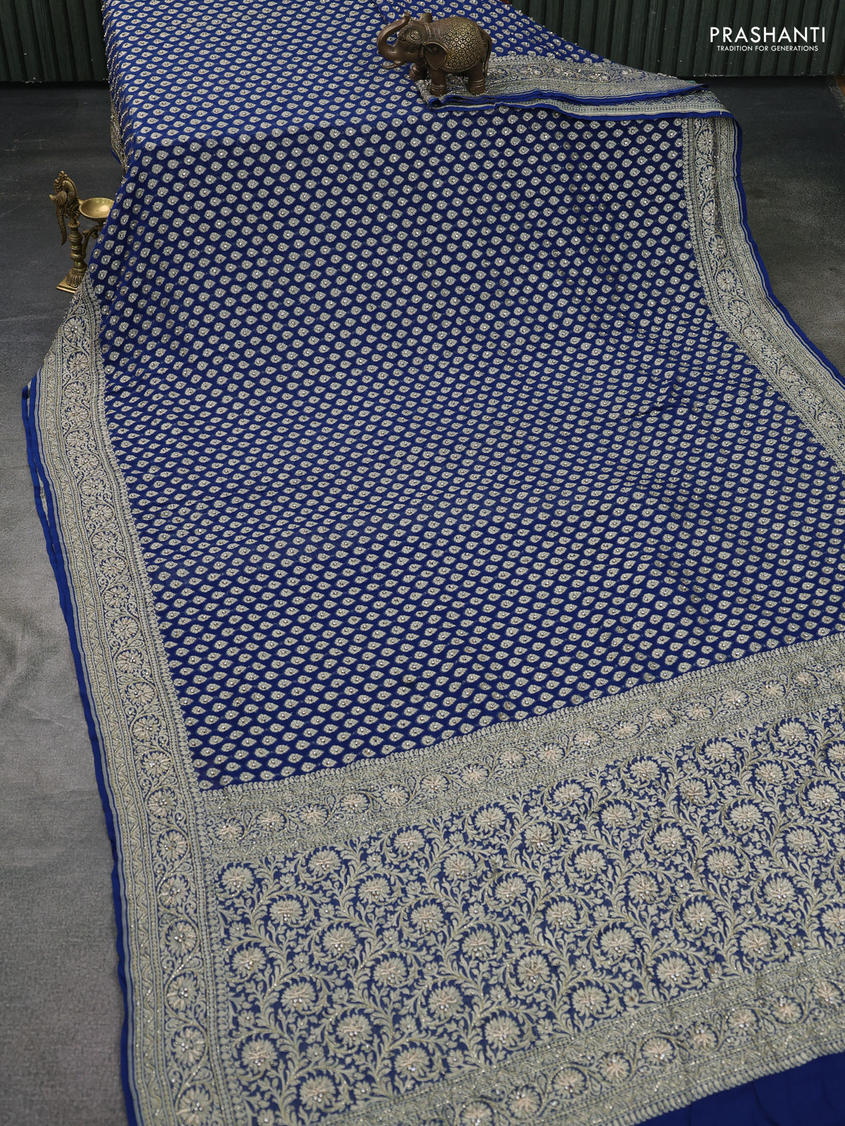 Banarasi georgette saree peacock blue with woven buttas & stone work and zardosi work border