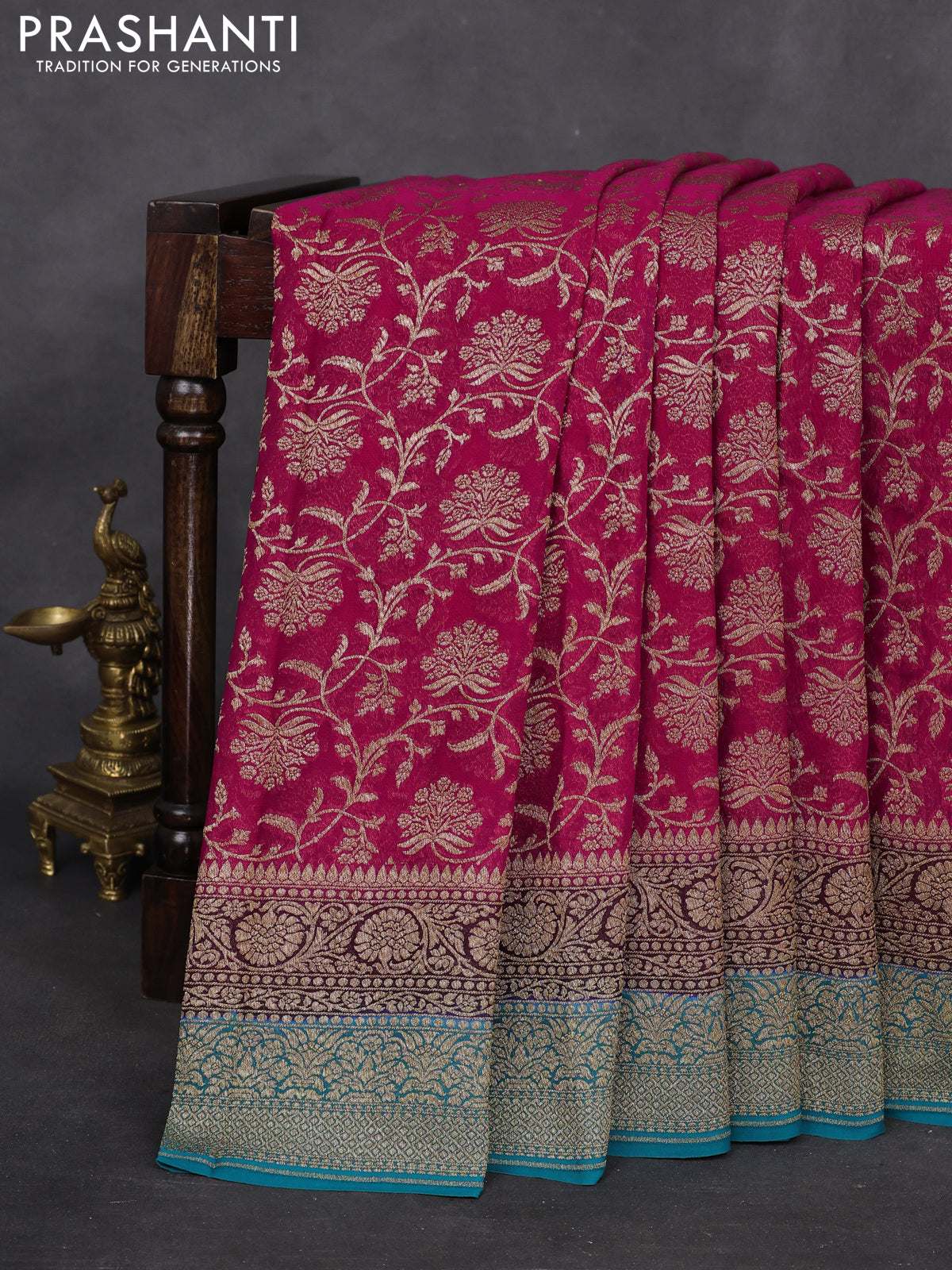 Banarasi georgette saree pink and teal blue with allover thread & zari weaves and woven border