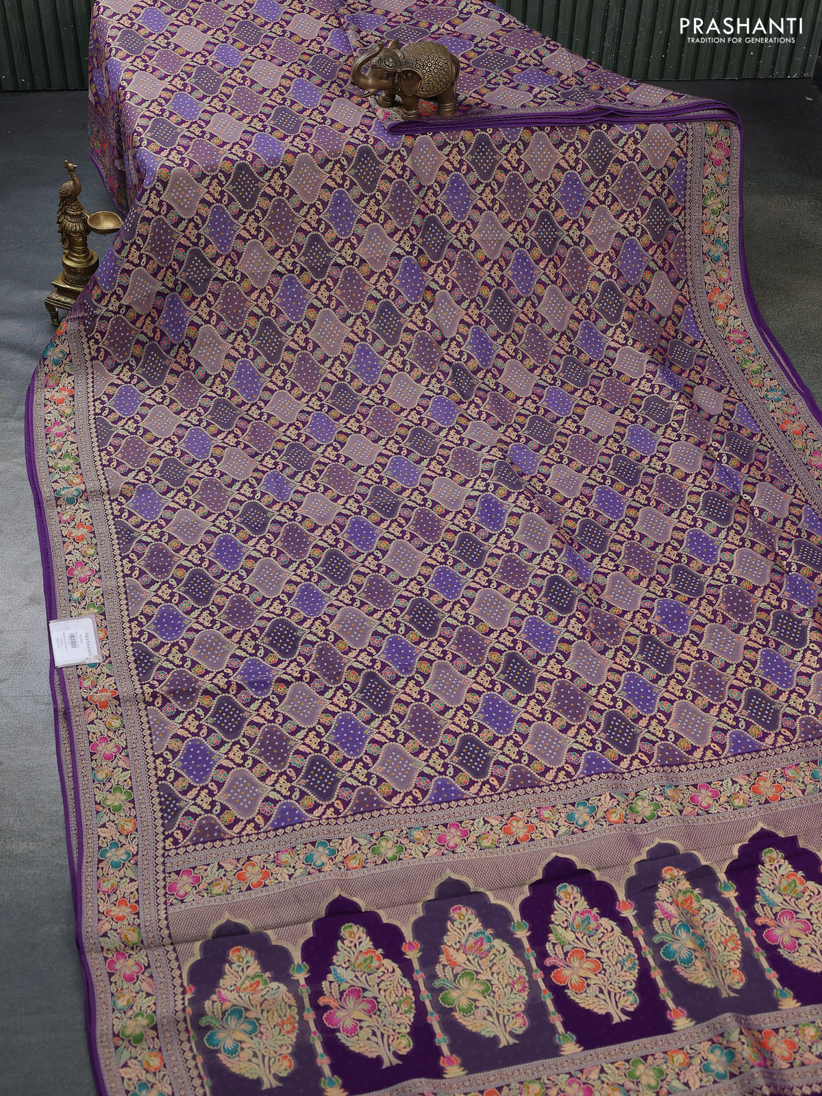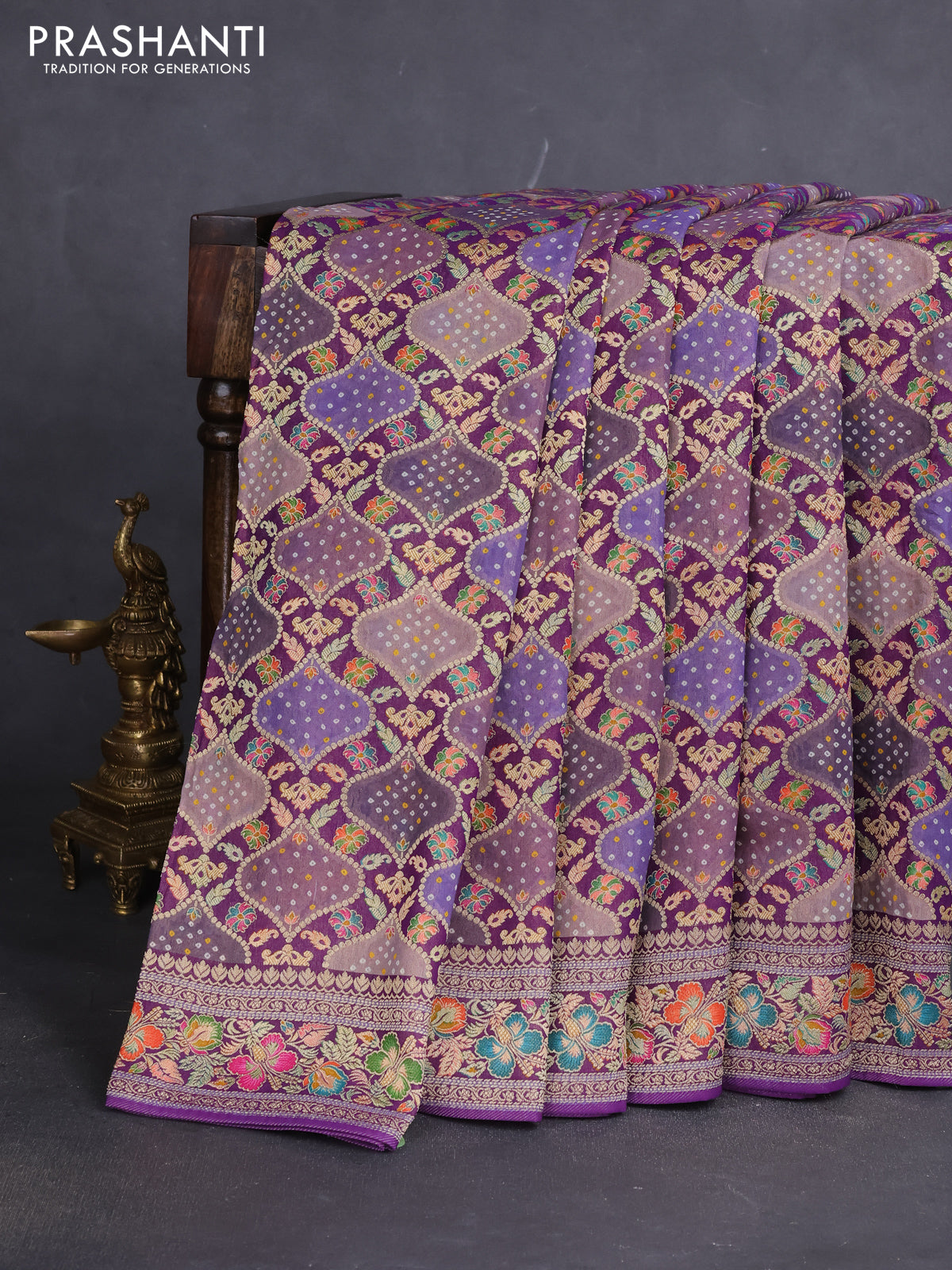 Banarasi georgette saree purple with bandhani prints & mina weaves