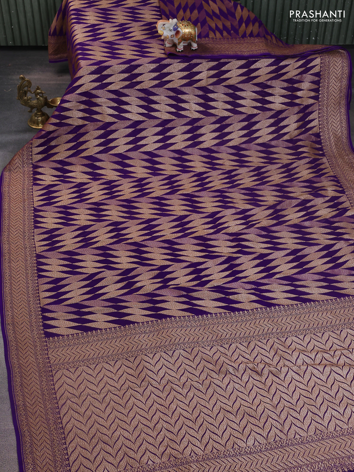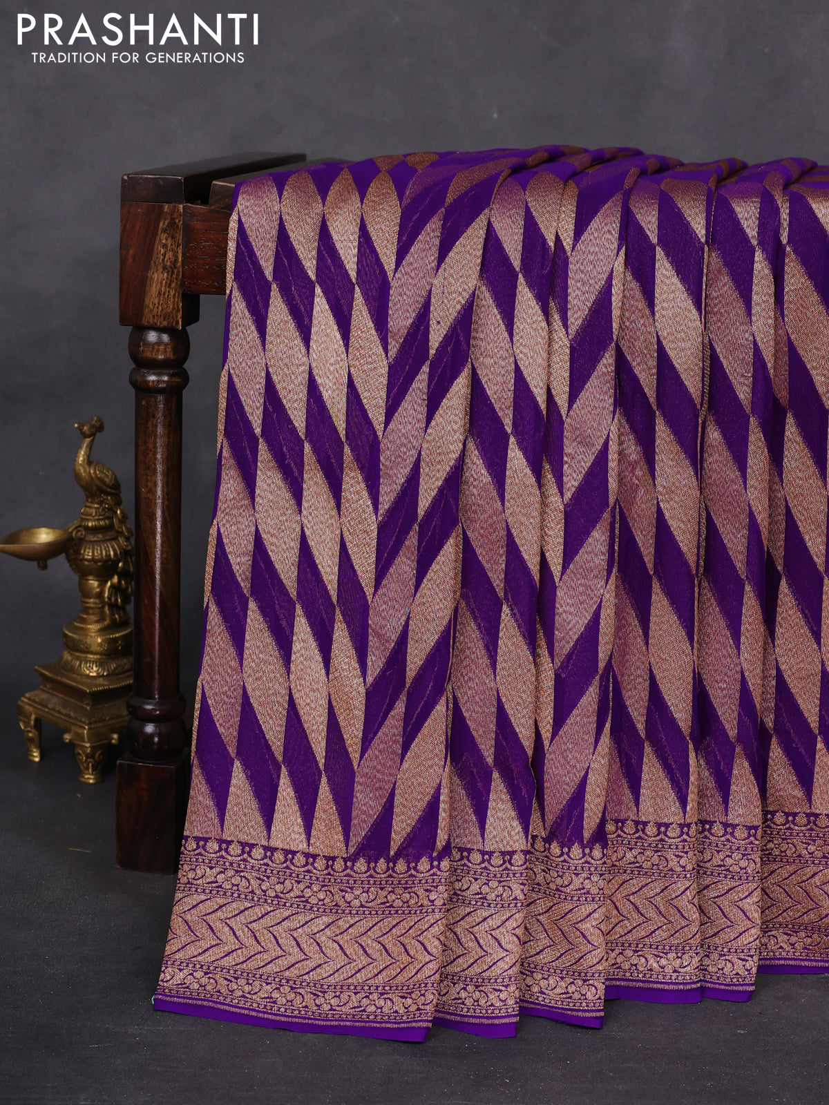 Banarasi georgette saree violet with allover geometric weaves and woven border