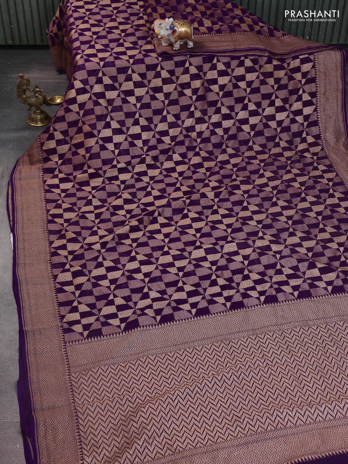 Banarasi georgette saree violet with allover geometric weaves and woven border
