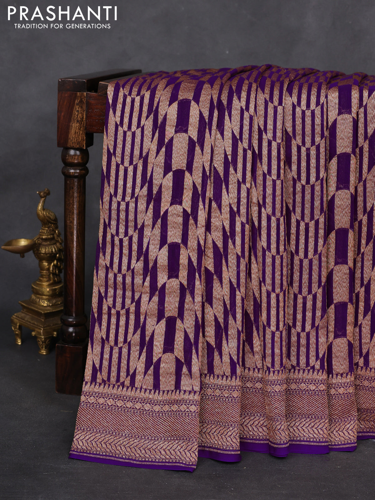 Banarasi georgette saree violet with allover geometric weaves and woven border