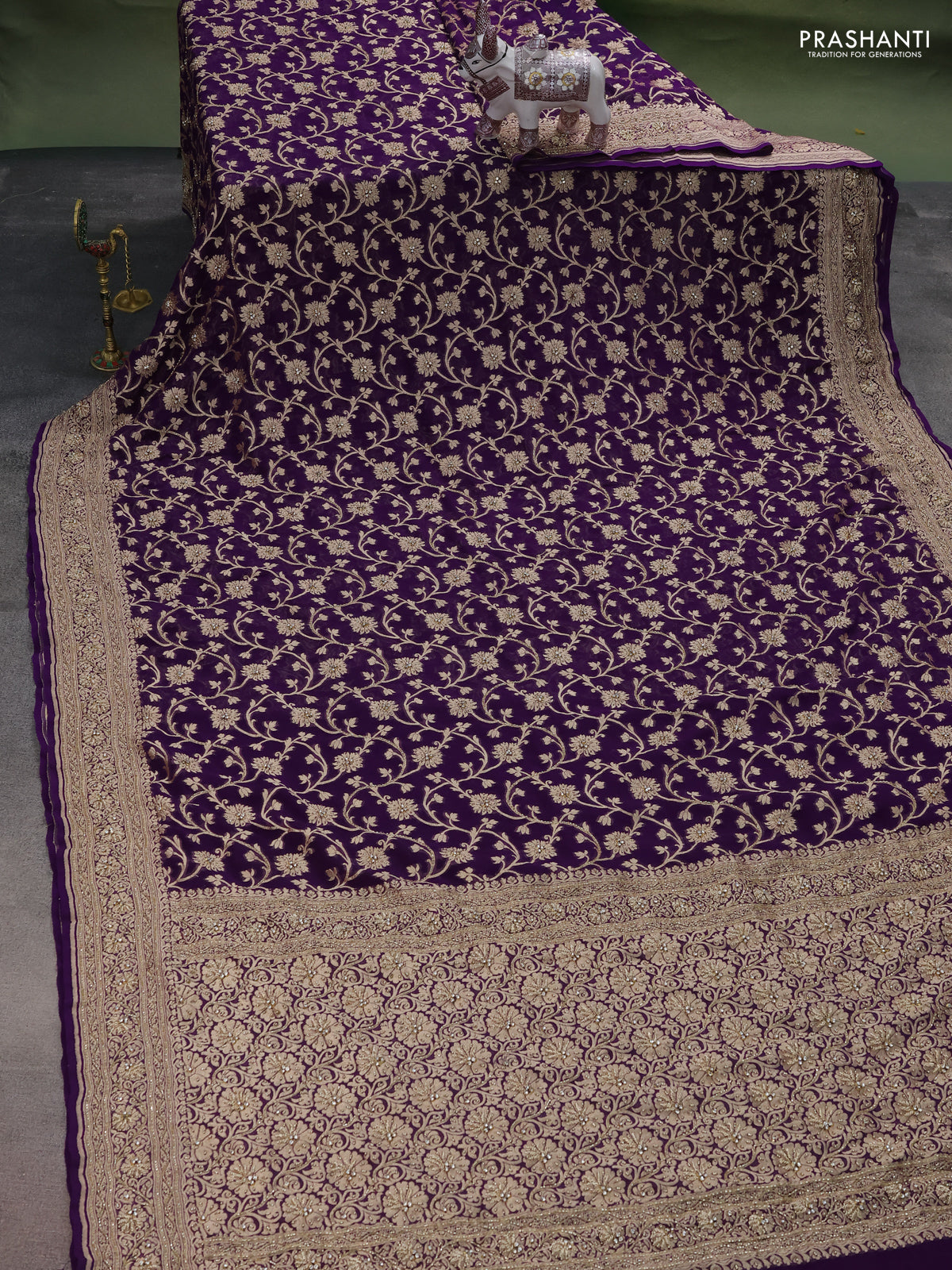 Banarasi georgette saree violet with allover jaal weaves & stone work and zardosi work border