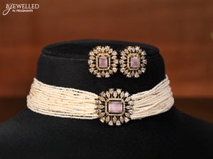 Pearl choker with baby pink...