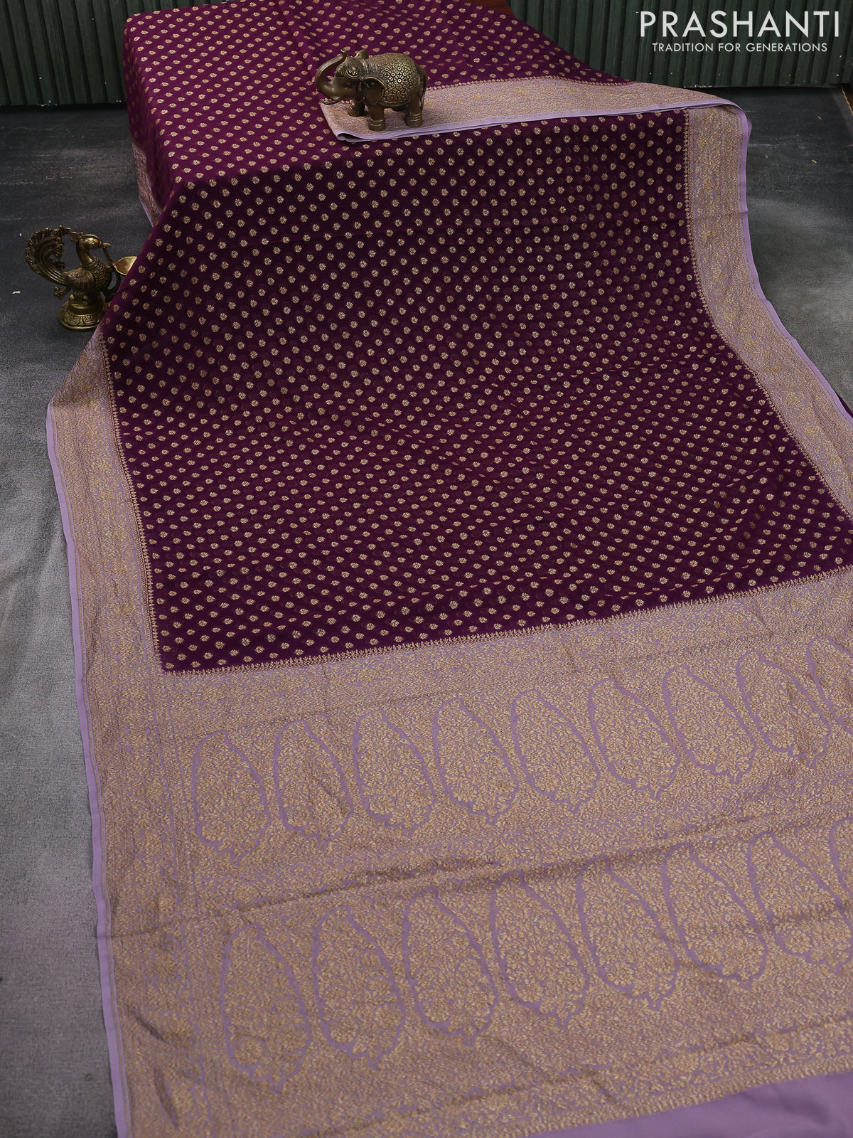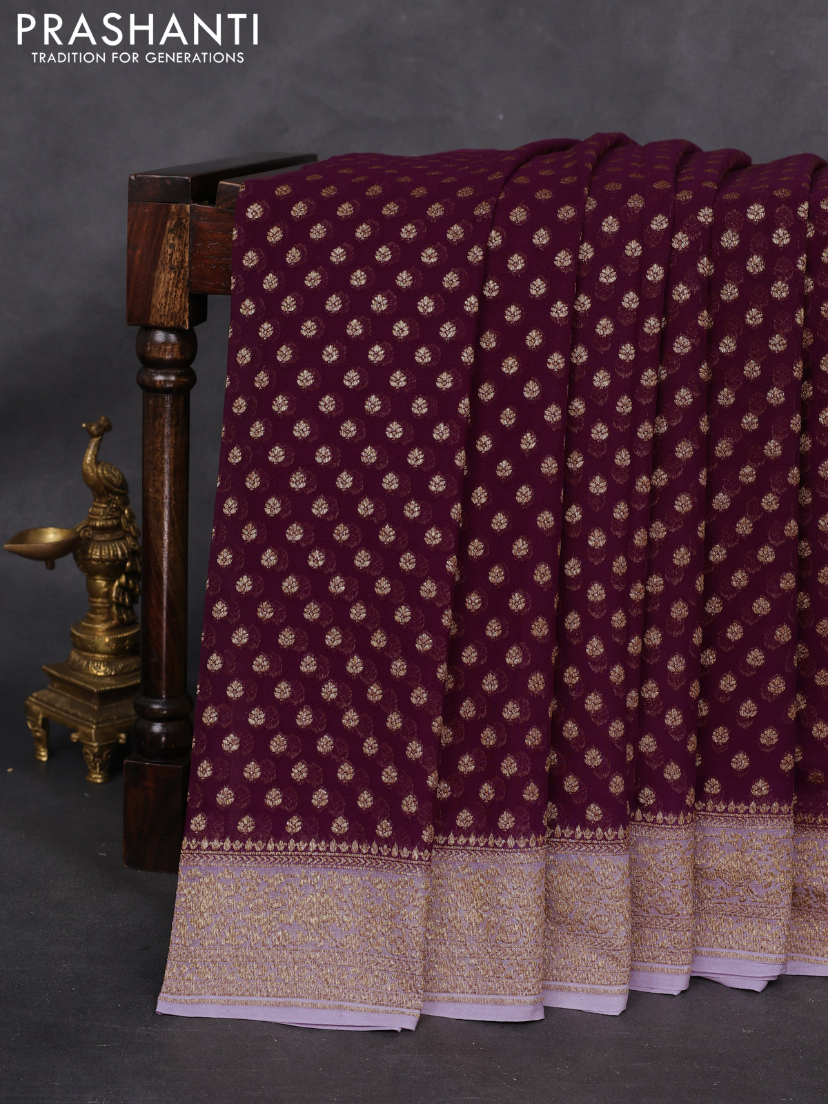 Banarasi georgette saree wine shade and lavender with allover woven buttas and woven border