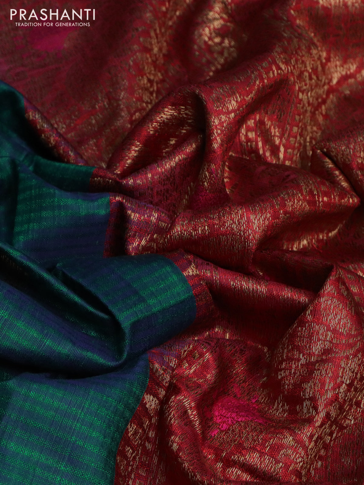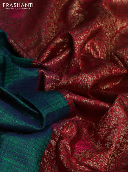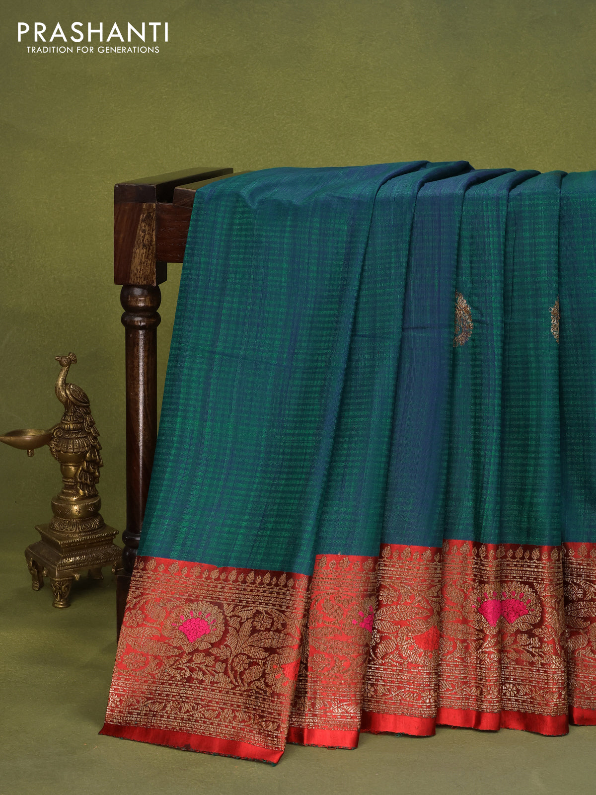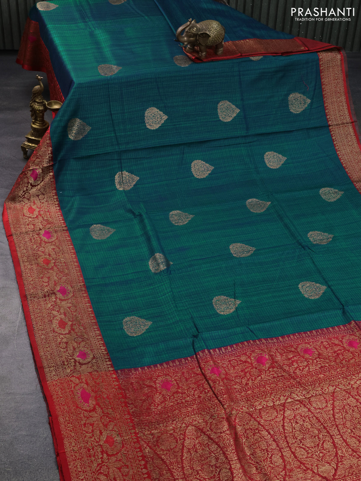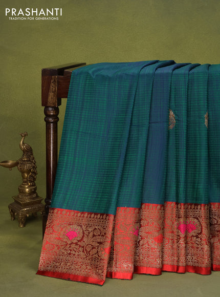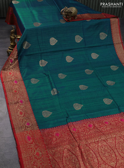 Banarasi handloom dupion silk saree greenish blue and red with woven buttas and woven border