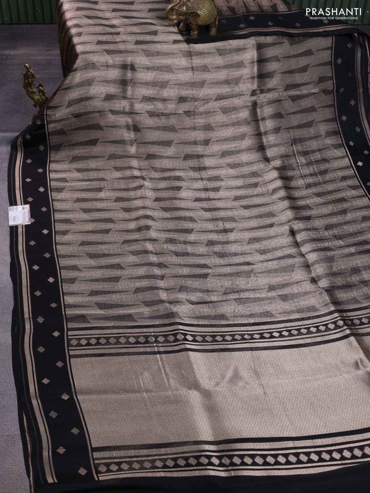 Banarasi katan silk saree black with allover zari woven brocade weaves and zari woven butta border