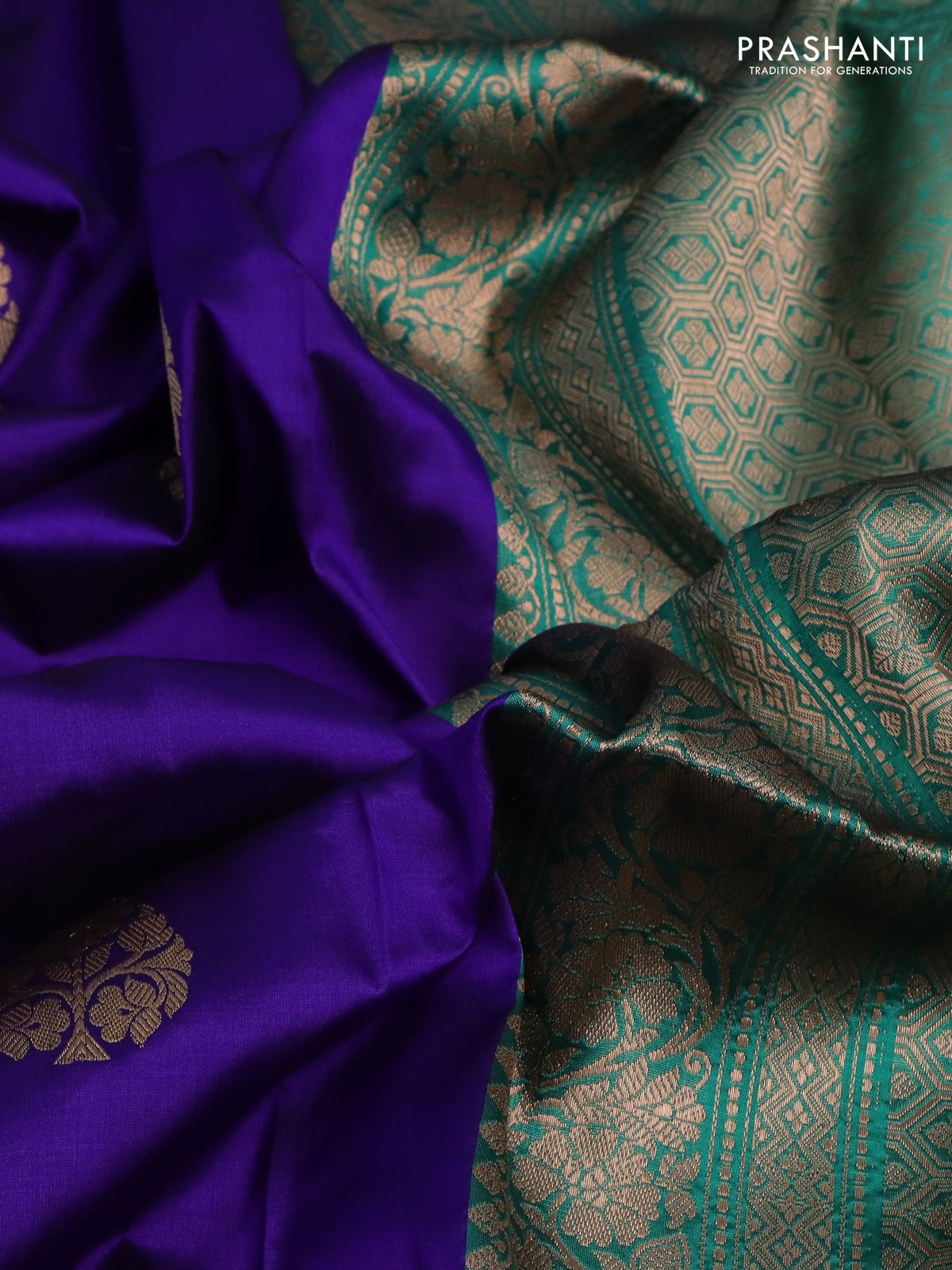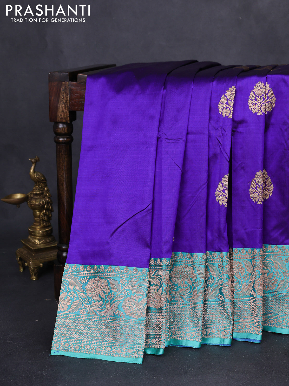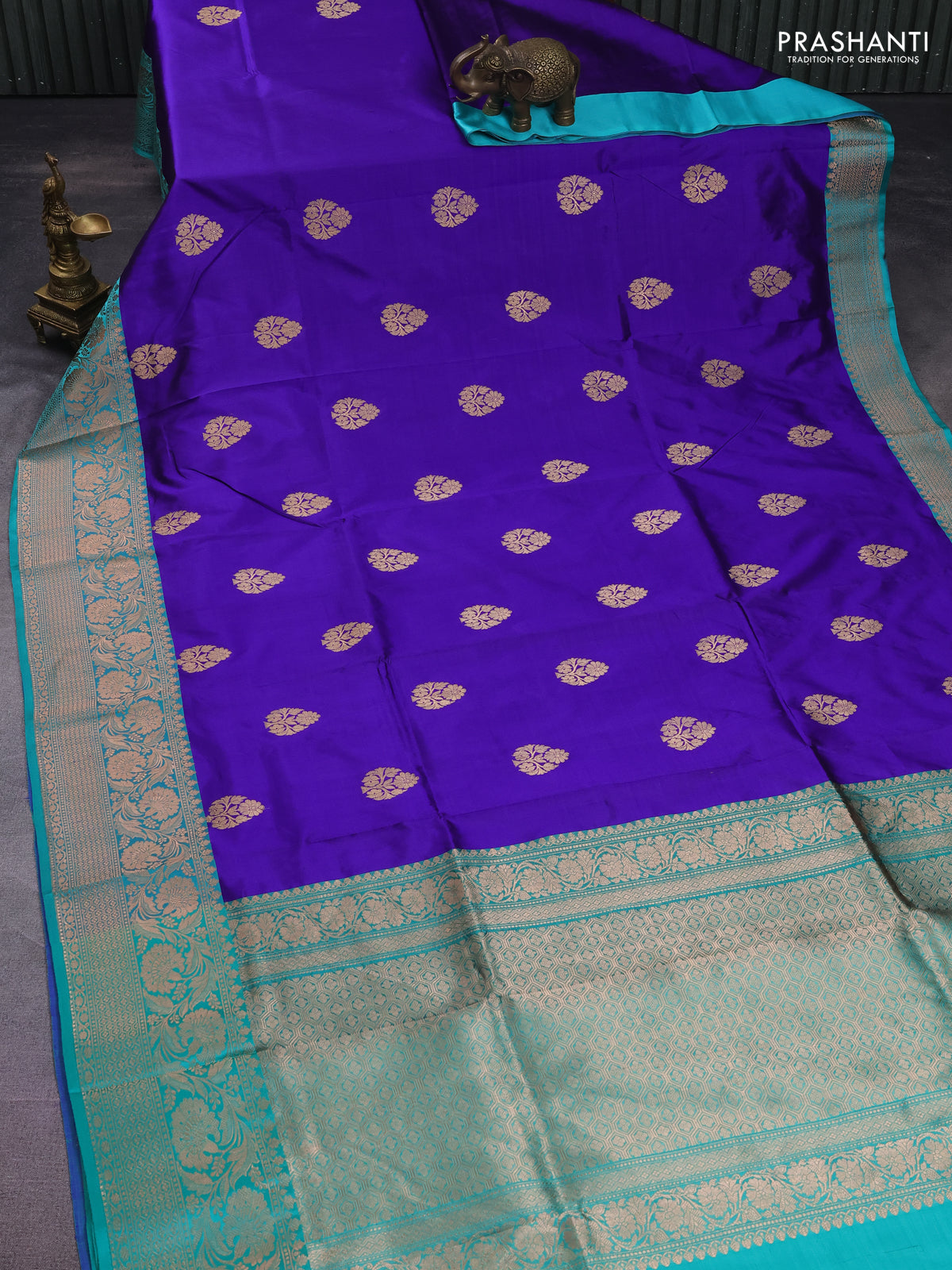 Banarasi katan silk saree blue and teal green with zari woven buttas and zari woven border