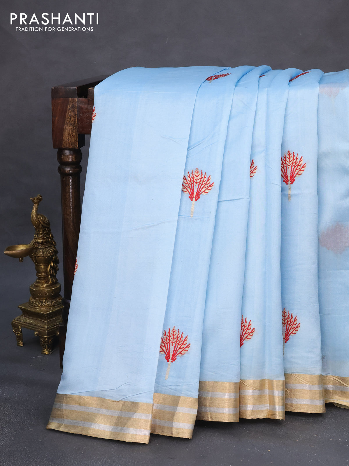 Banarasi katan silk saree light blue with thread & zari woven buttas and zari woven border