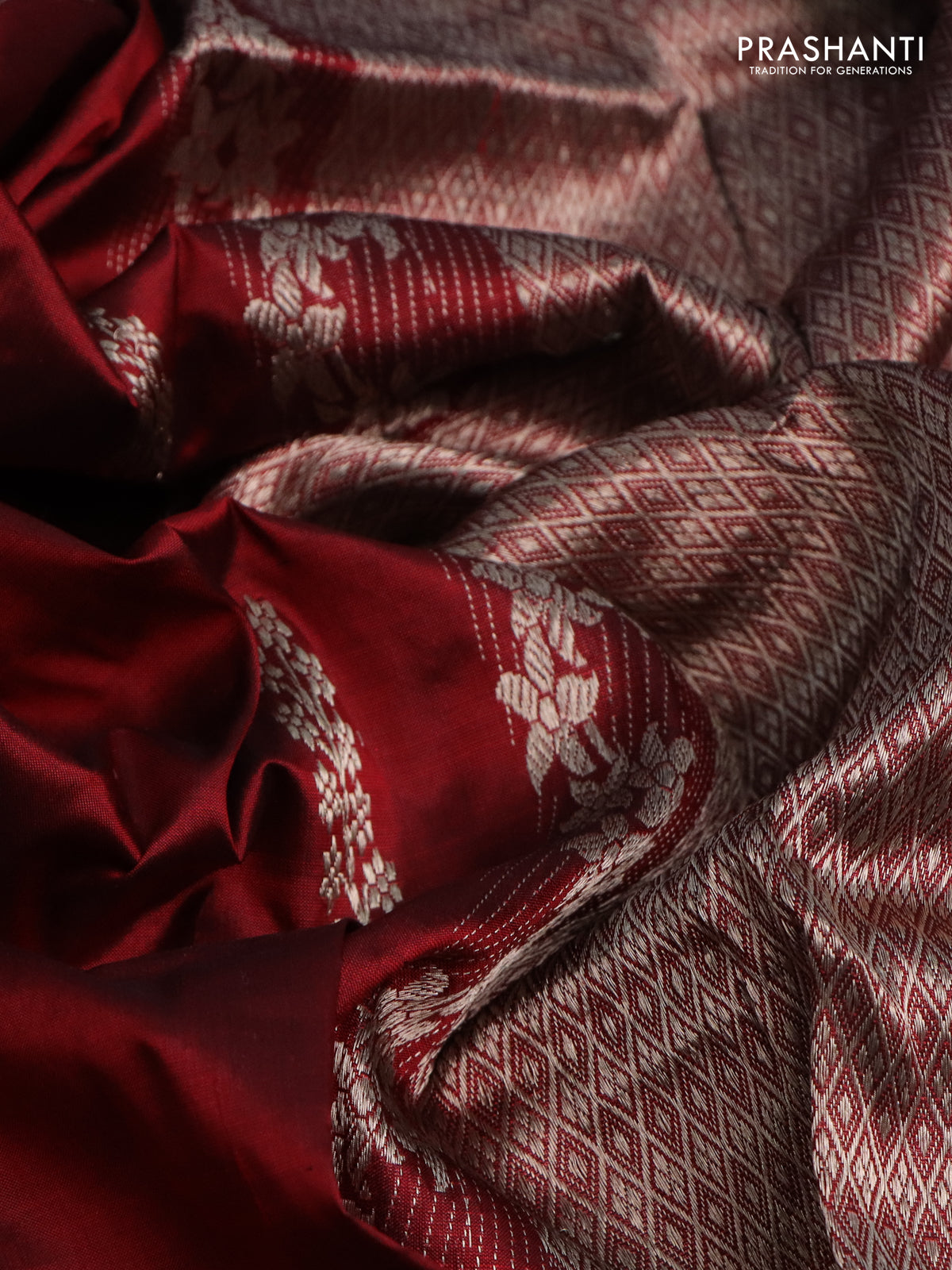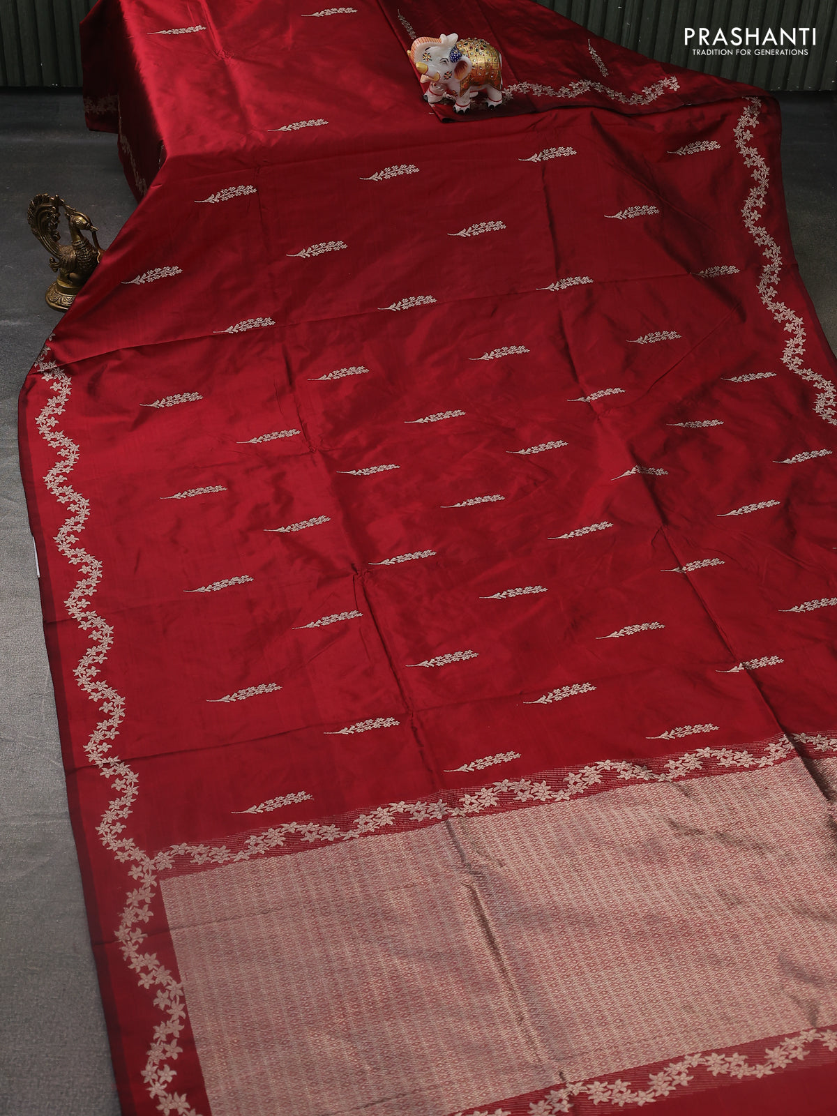 Banarasi katan silk saree maroon with zari woven buttas and zari woven border