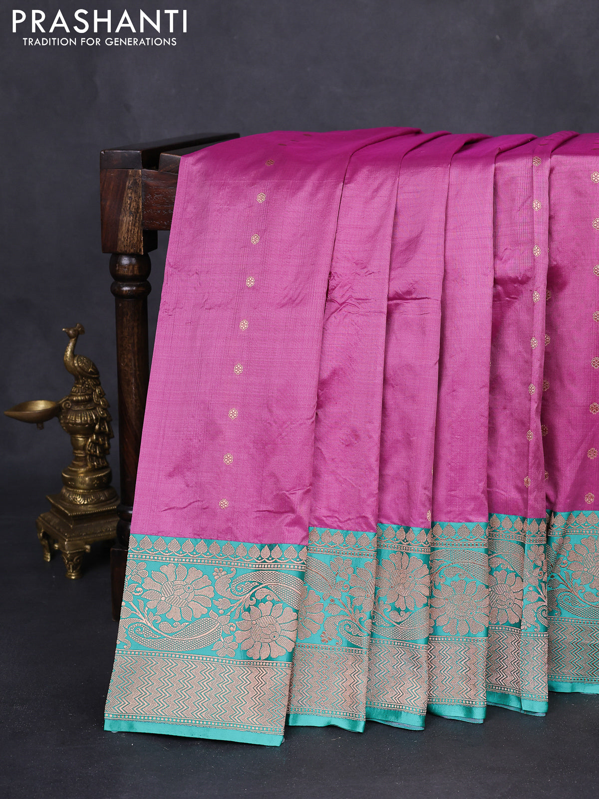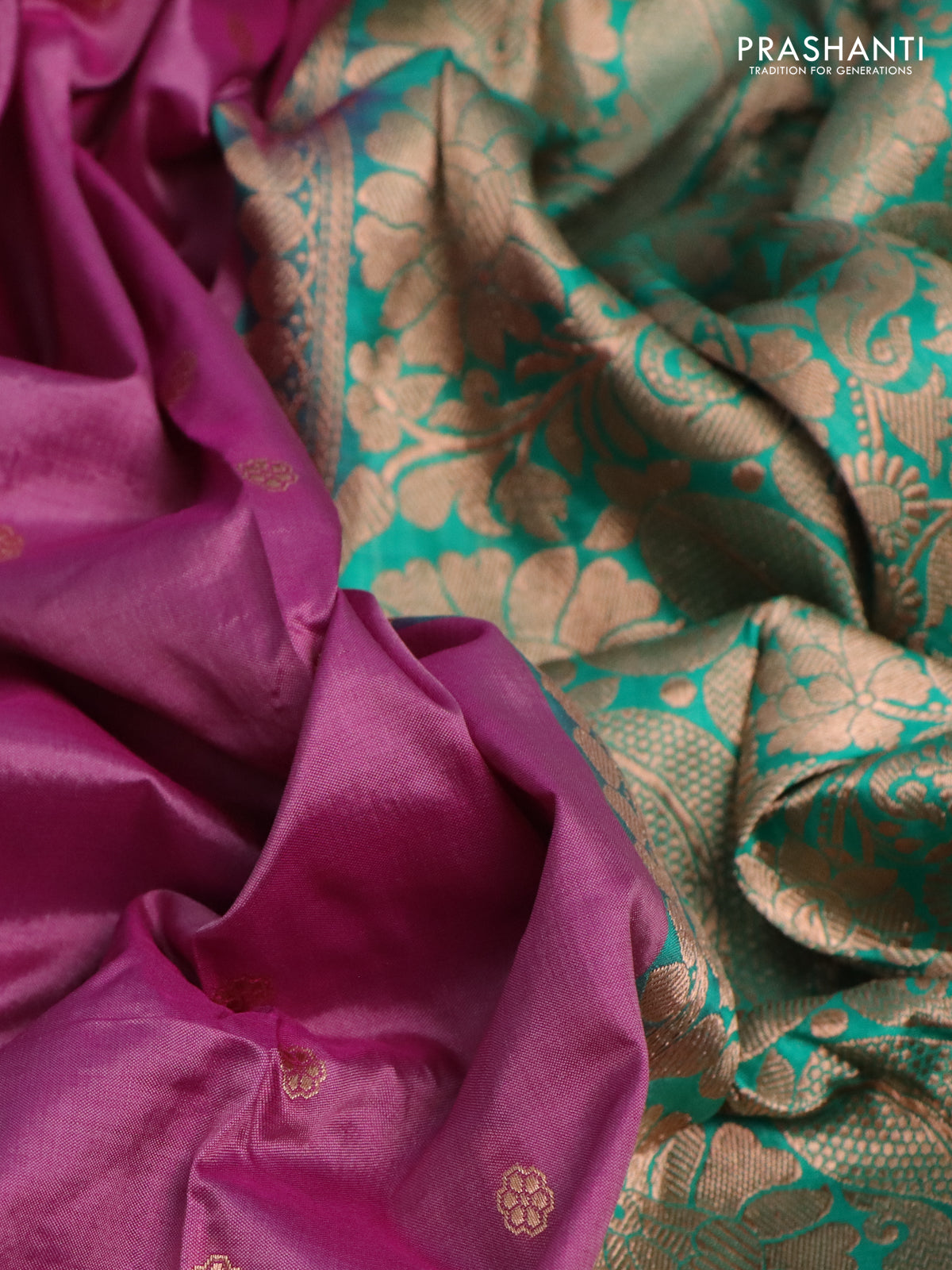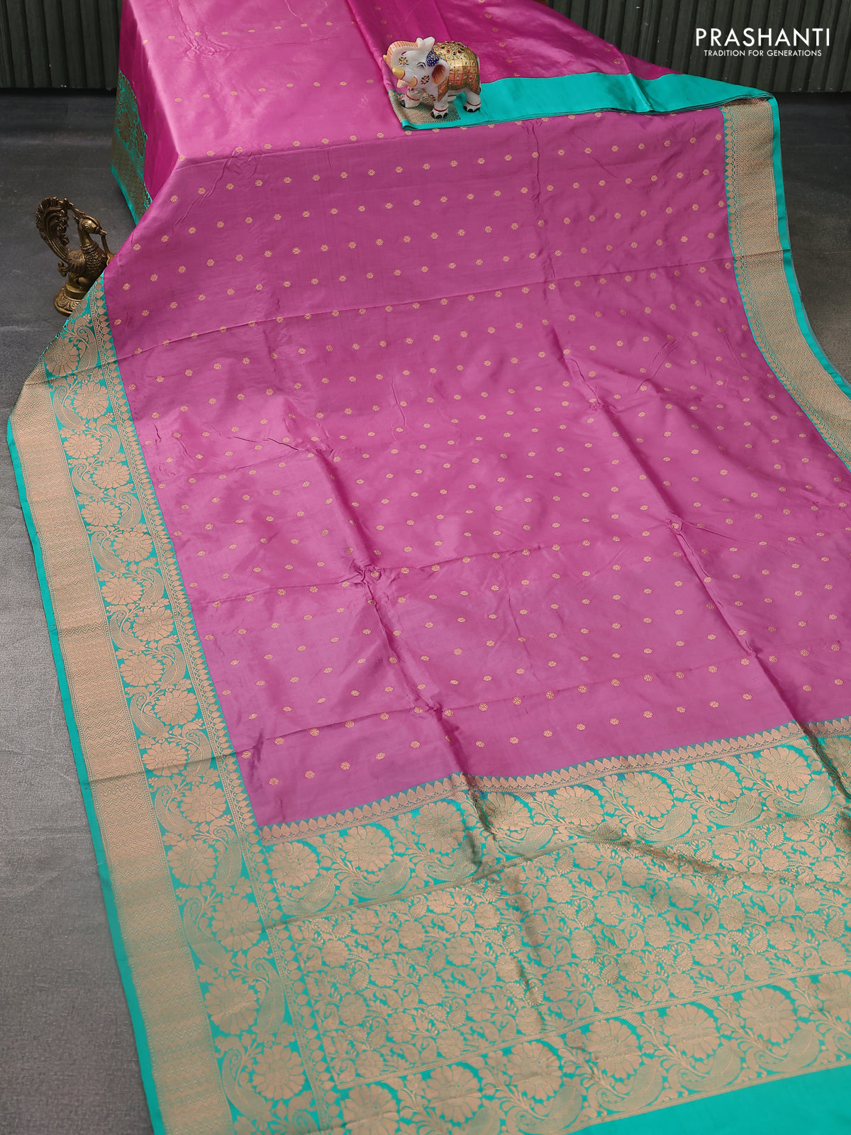 Banarasi katan silk saree mauve pink and teal green shade with allover zari woven buttas and floral zari woven border