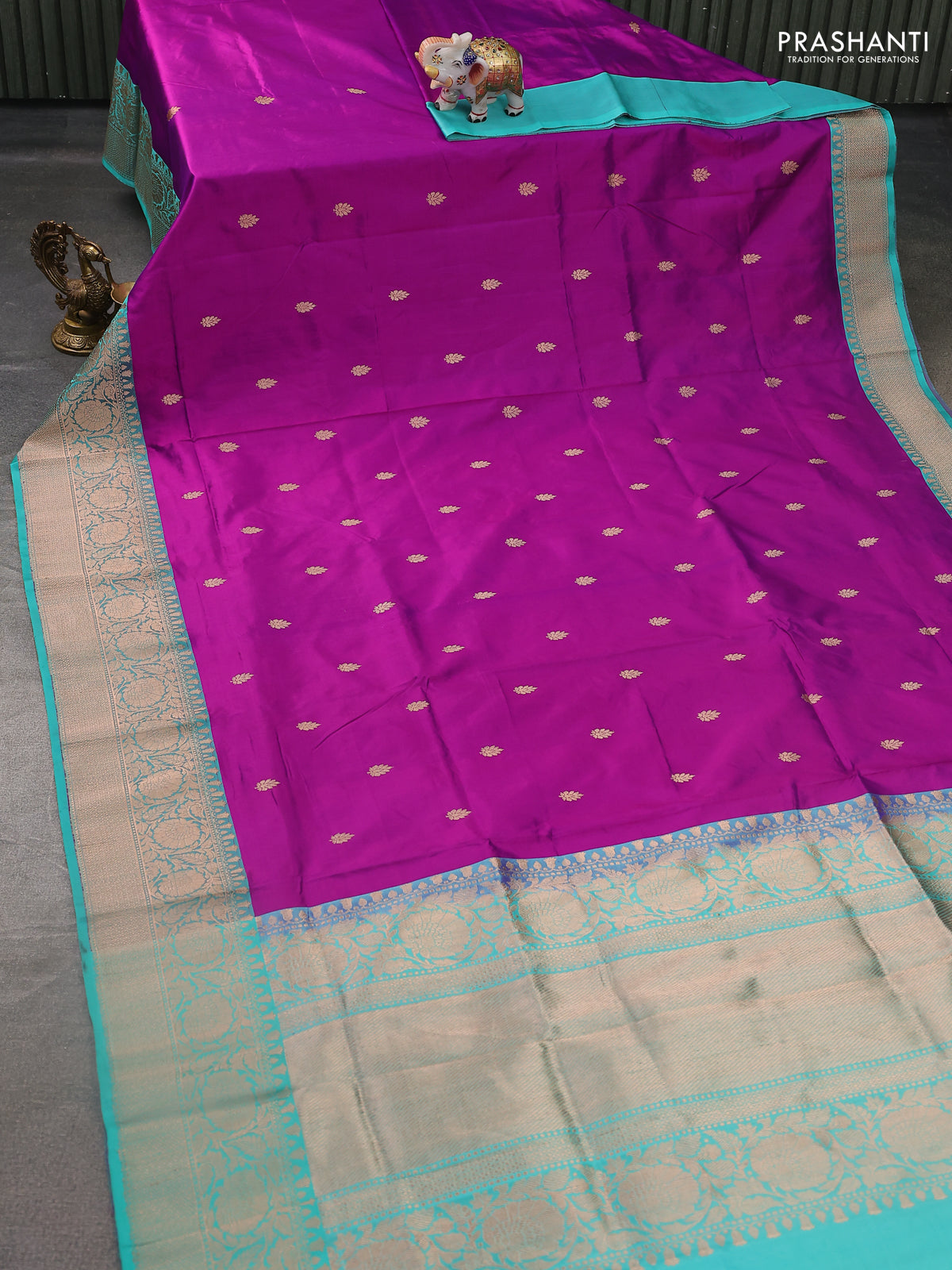 Banarasi katan silk saree purple and teal blue with zari woven buttas and floral zari woven border