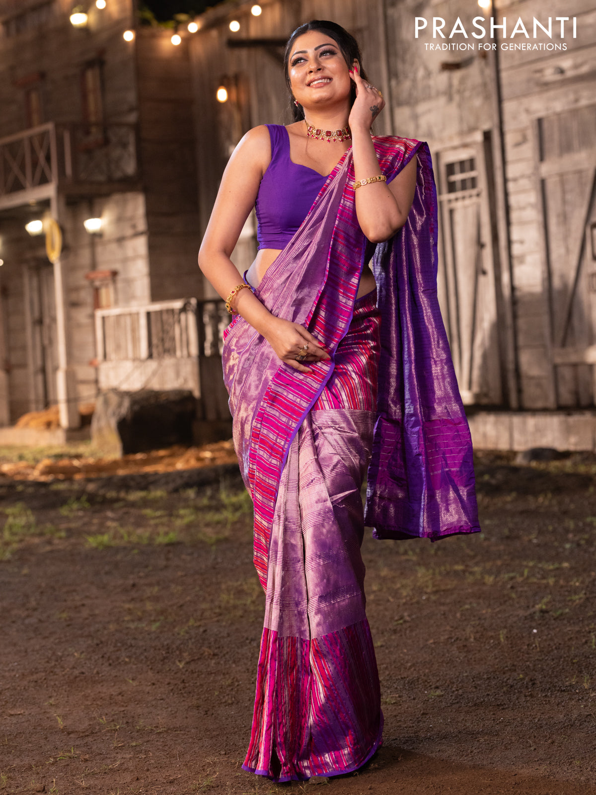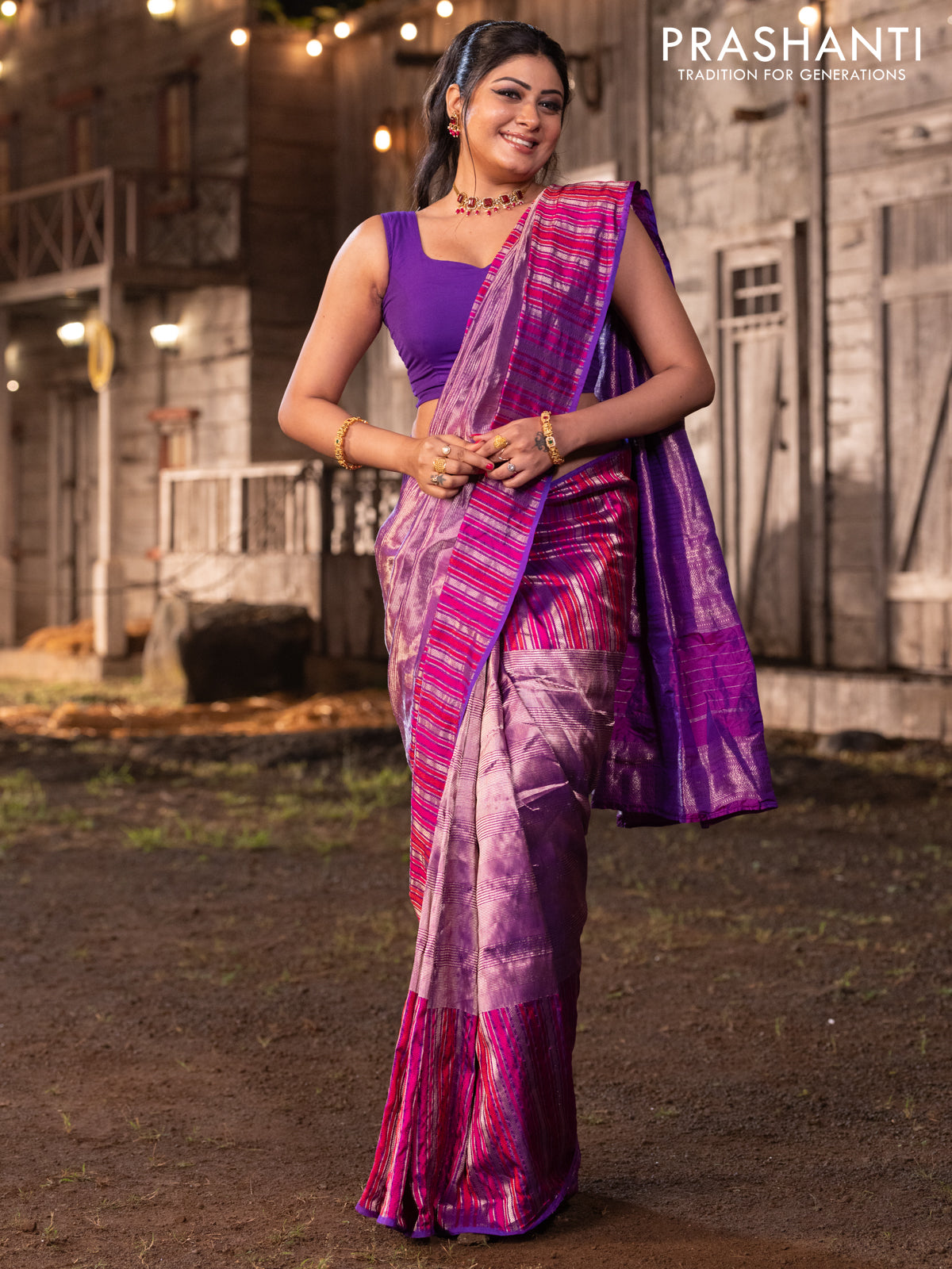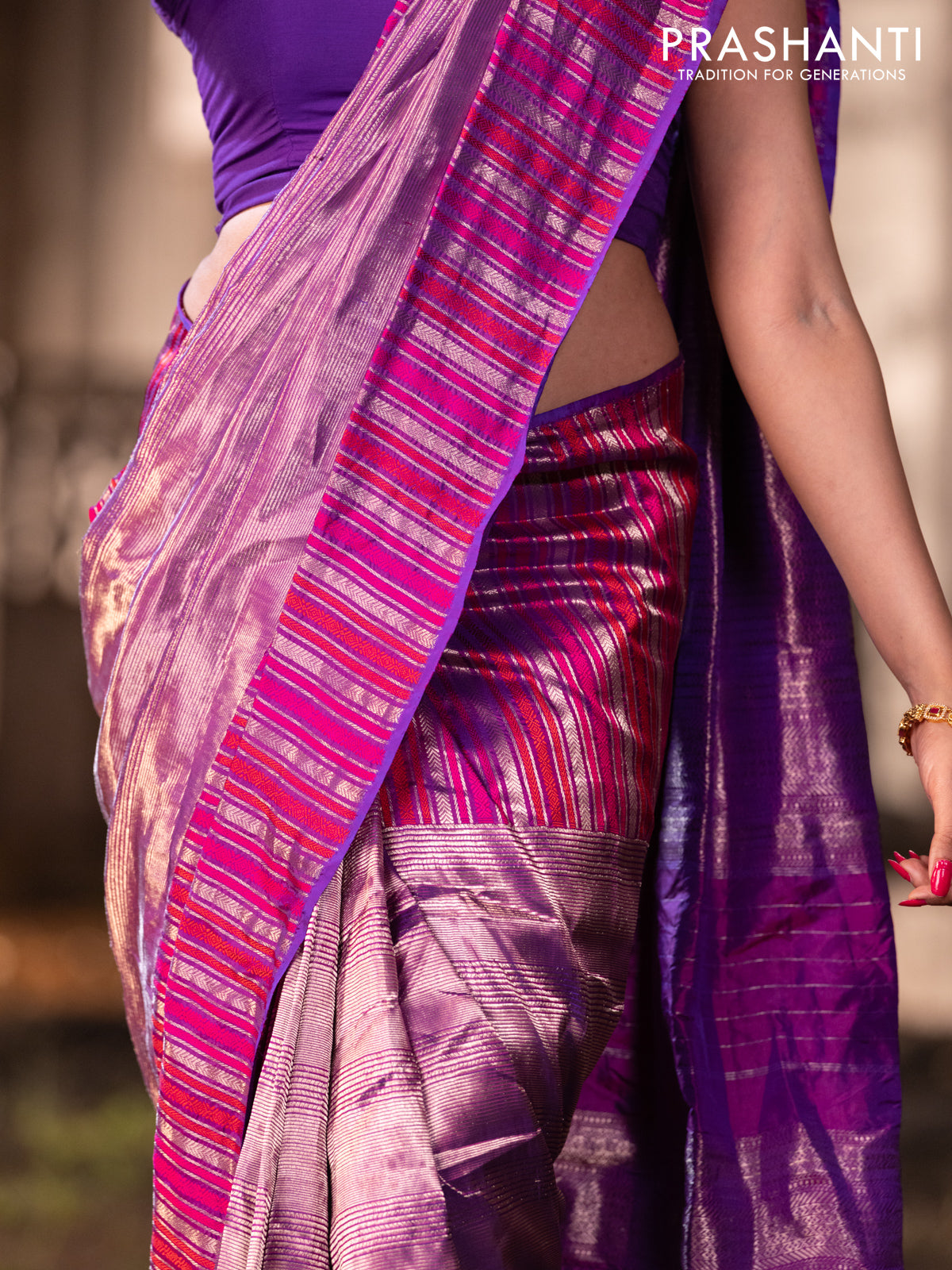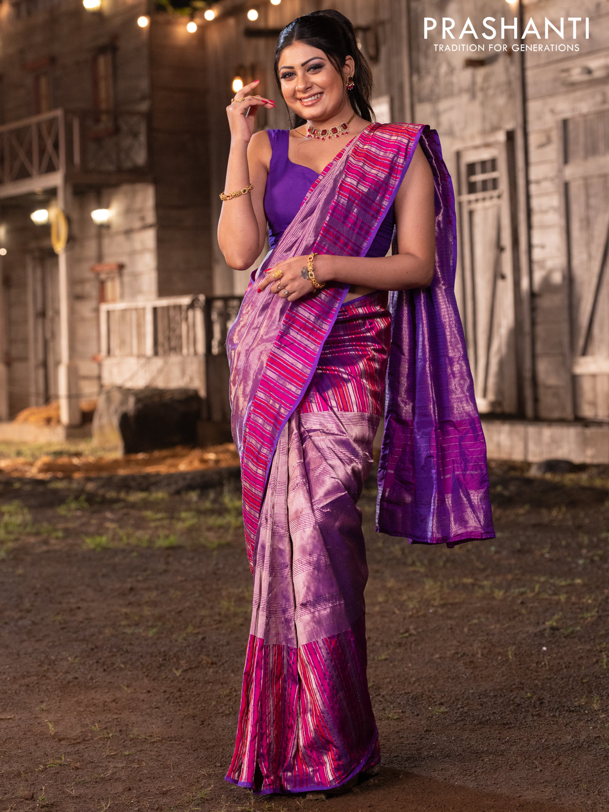 Banarasi katan tissue silk saree purple with plain body and rich zari border