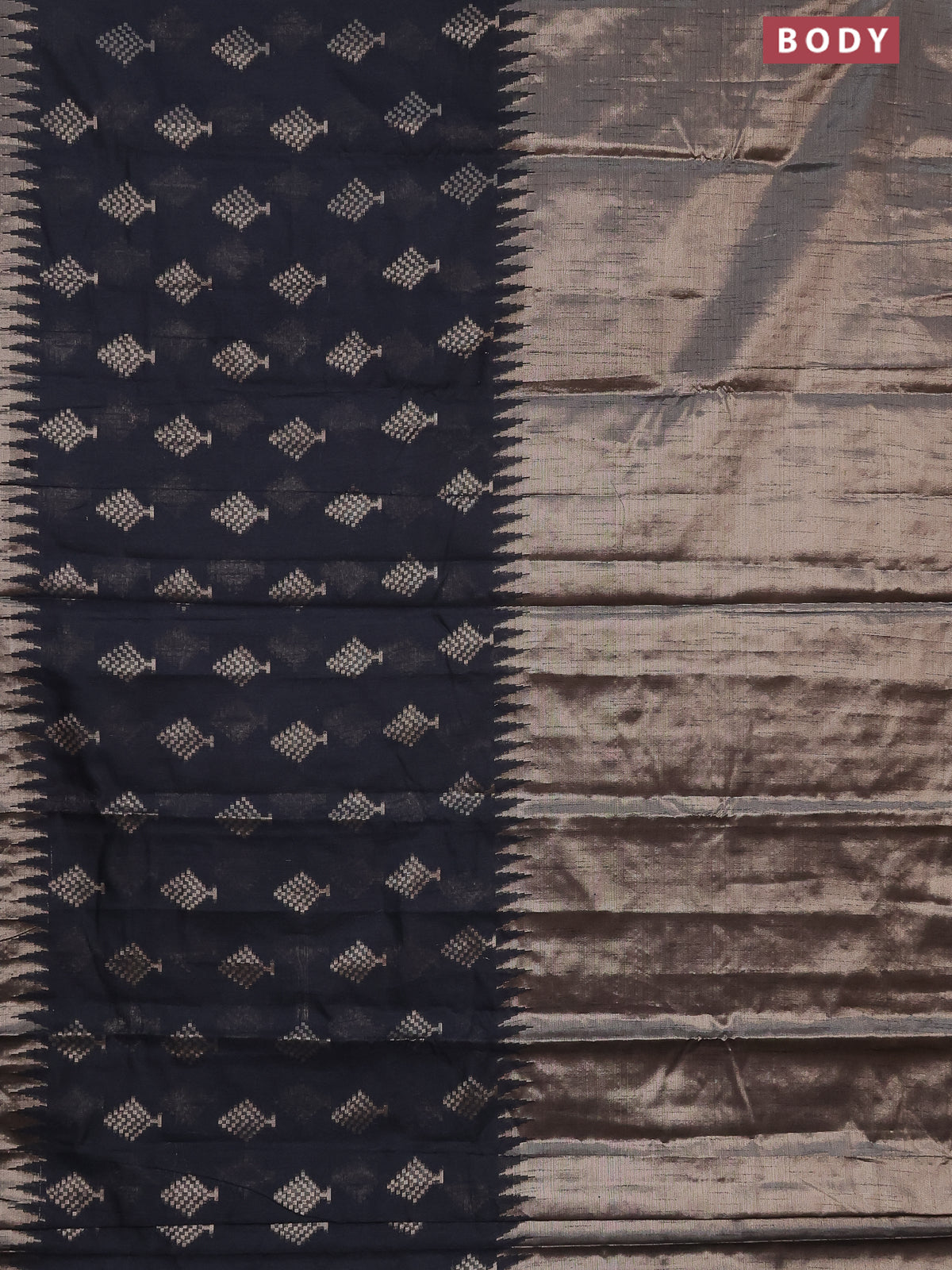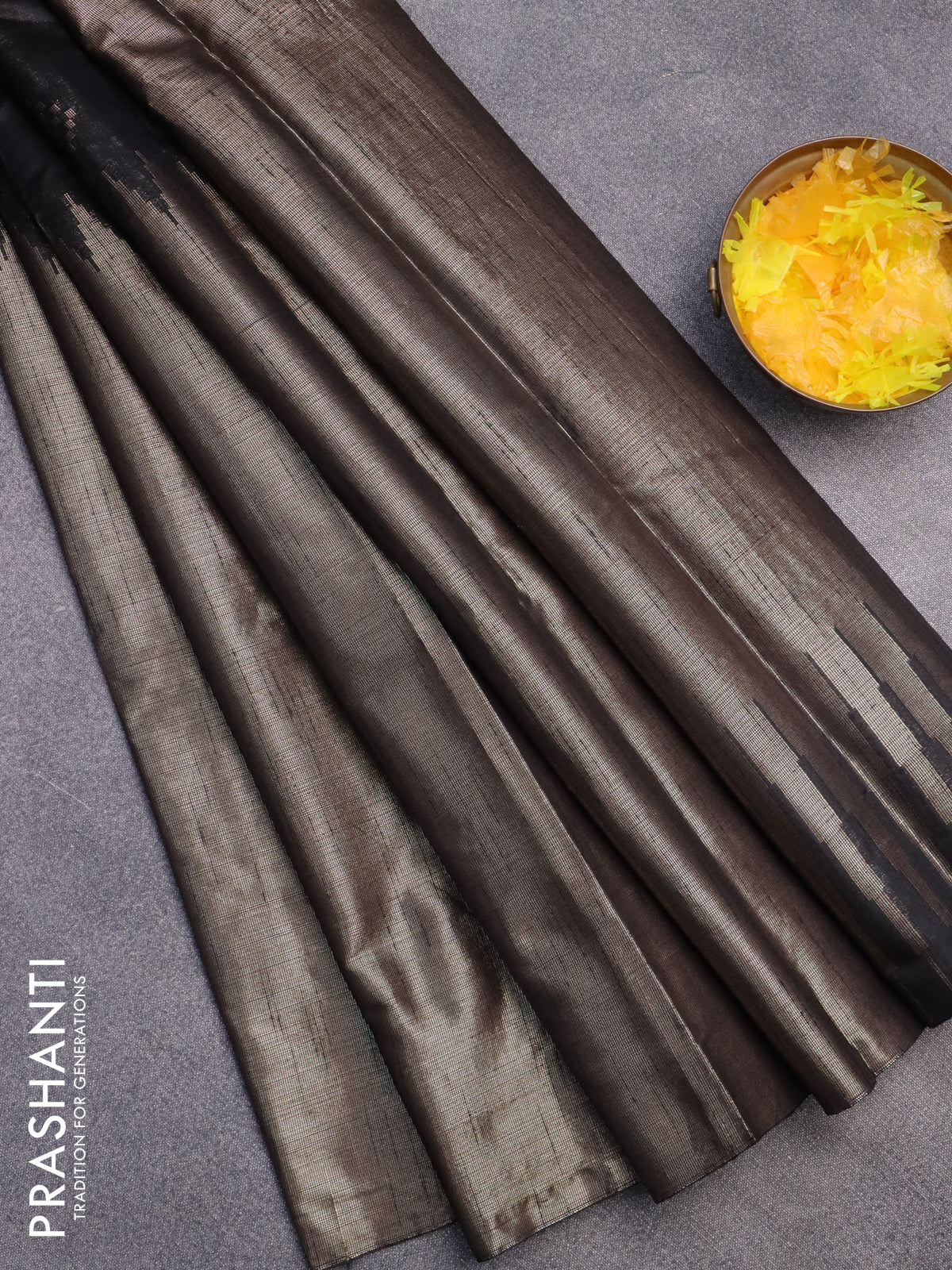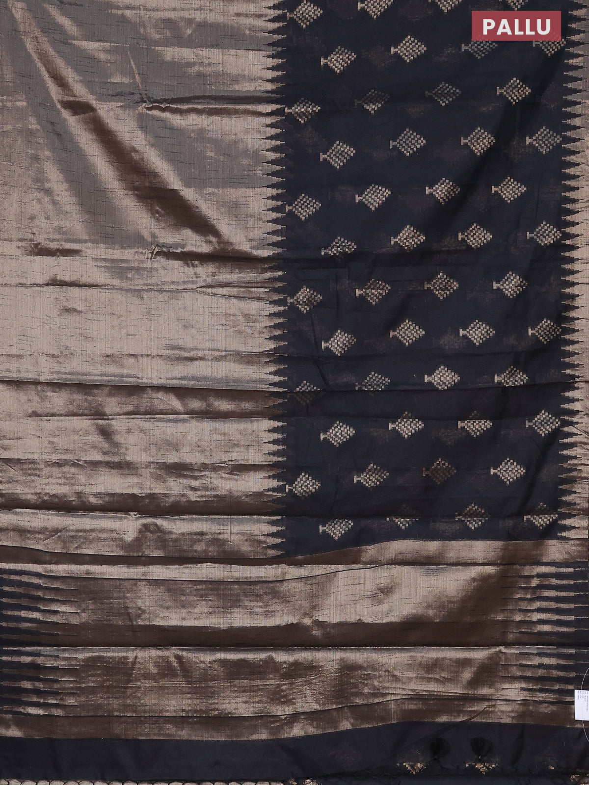 Banarasi matka tissue saree black with thread & zari woven buttas and long temple design zari woven border