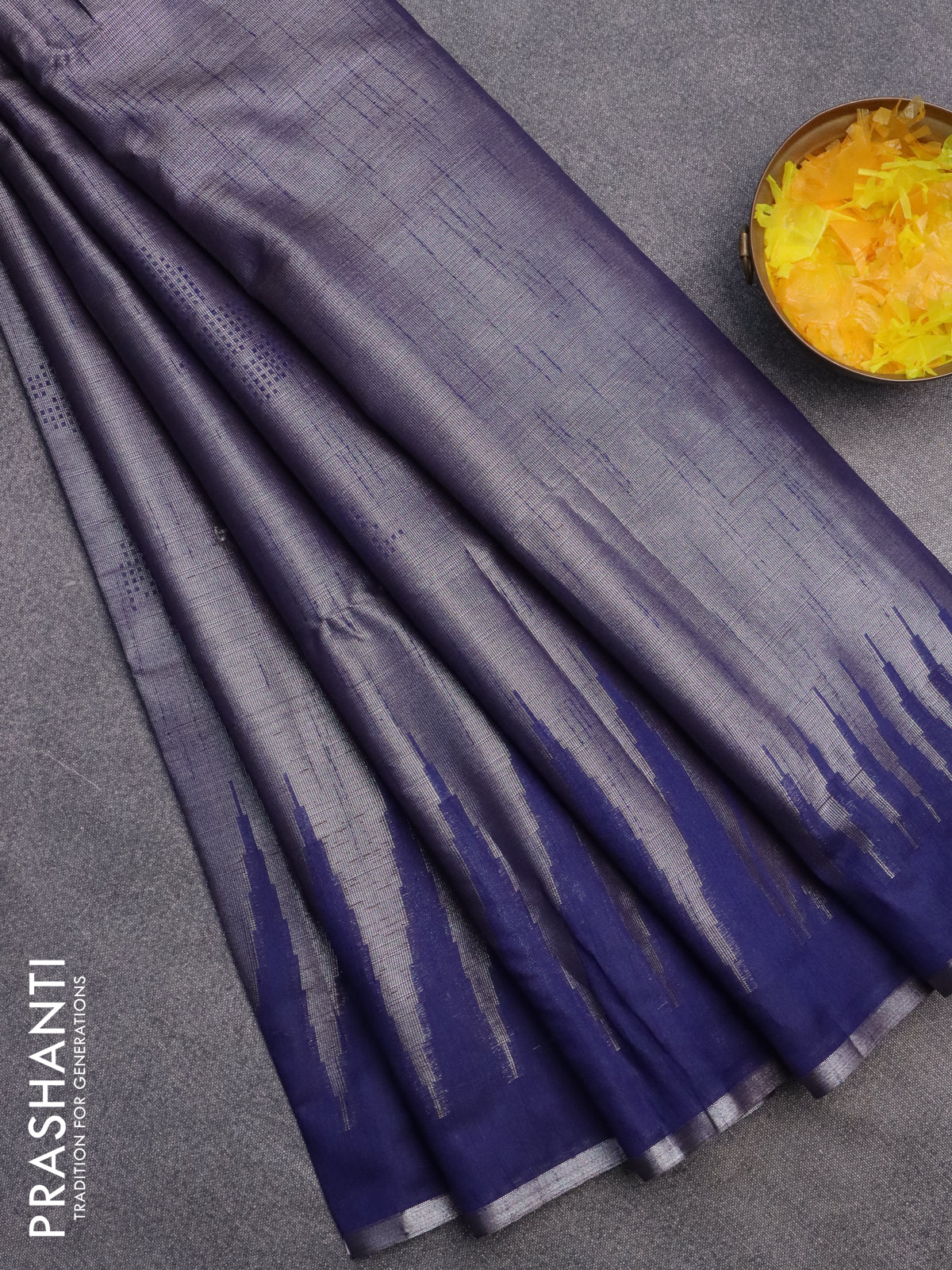 Banarasi matka tissue saree blue with plain body and long temple design zari woven border