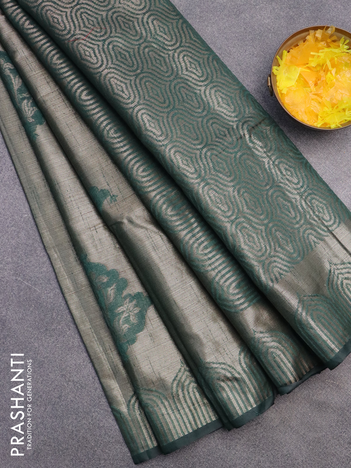 Banarasi matka tissue saree green with thread woven buttas and zari woven border