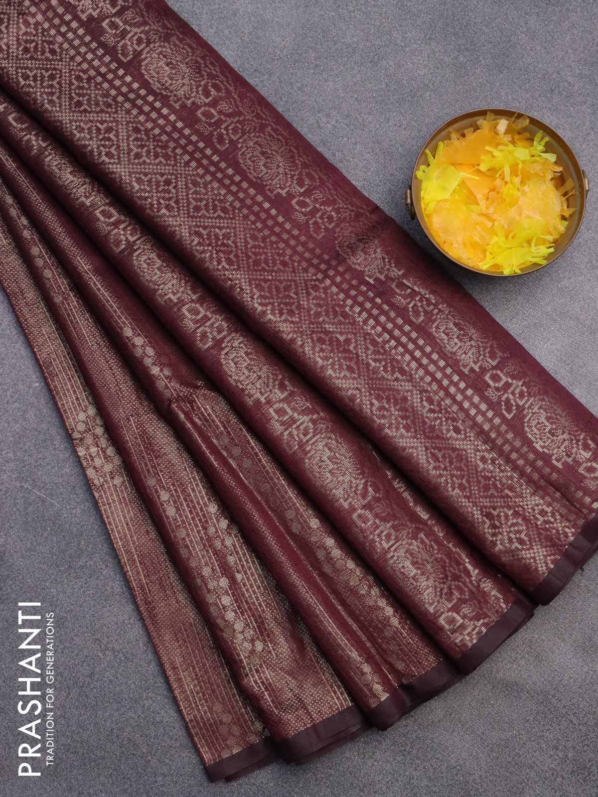 Banarasi matka tissue saree wine shade with allover zari woven brocade weaves and zari woven border