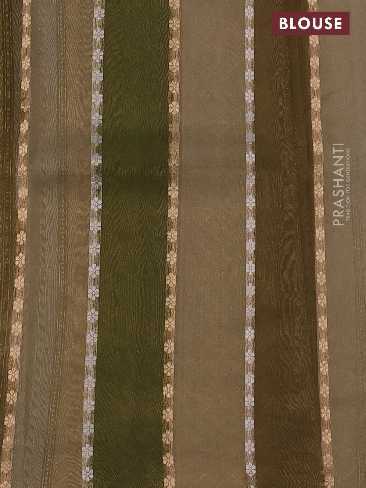 Banarasi organza silk saree beige and sap green with rangakt weaves and zari woven piping boder