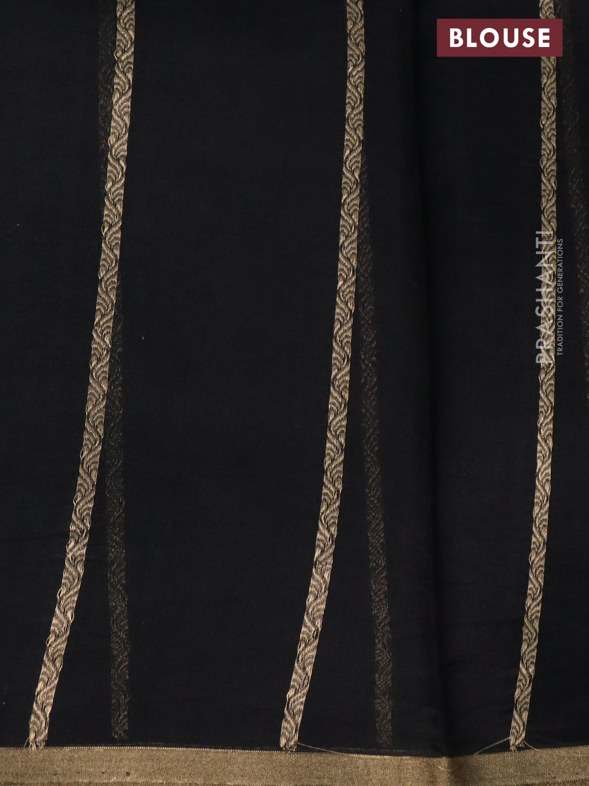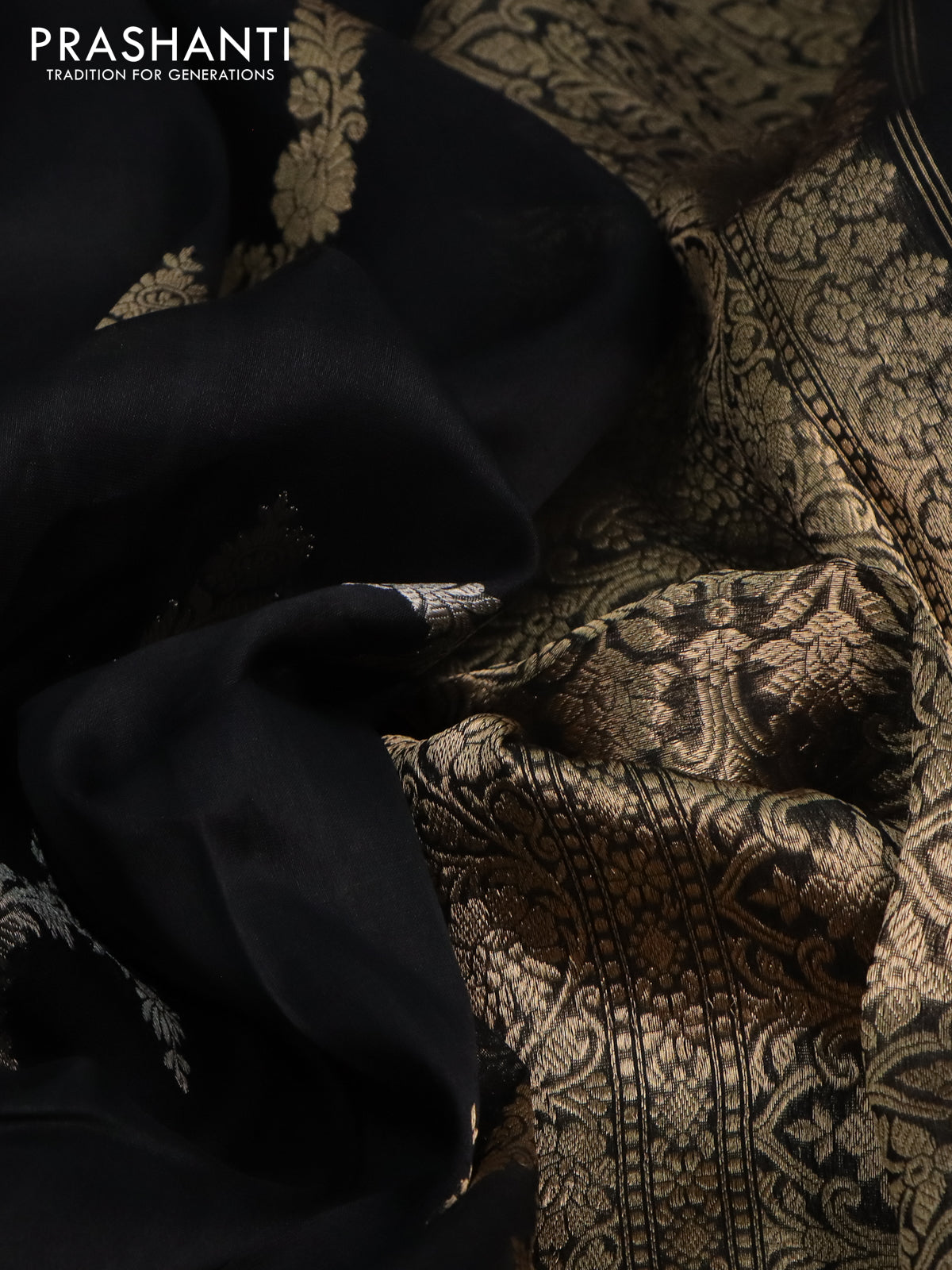 Banarasi organza silk saree black with silver & gold zari weaves and zari woven piping border