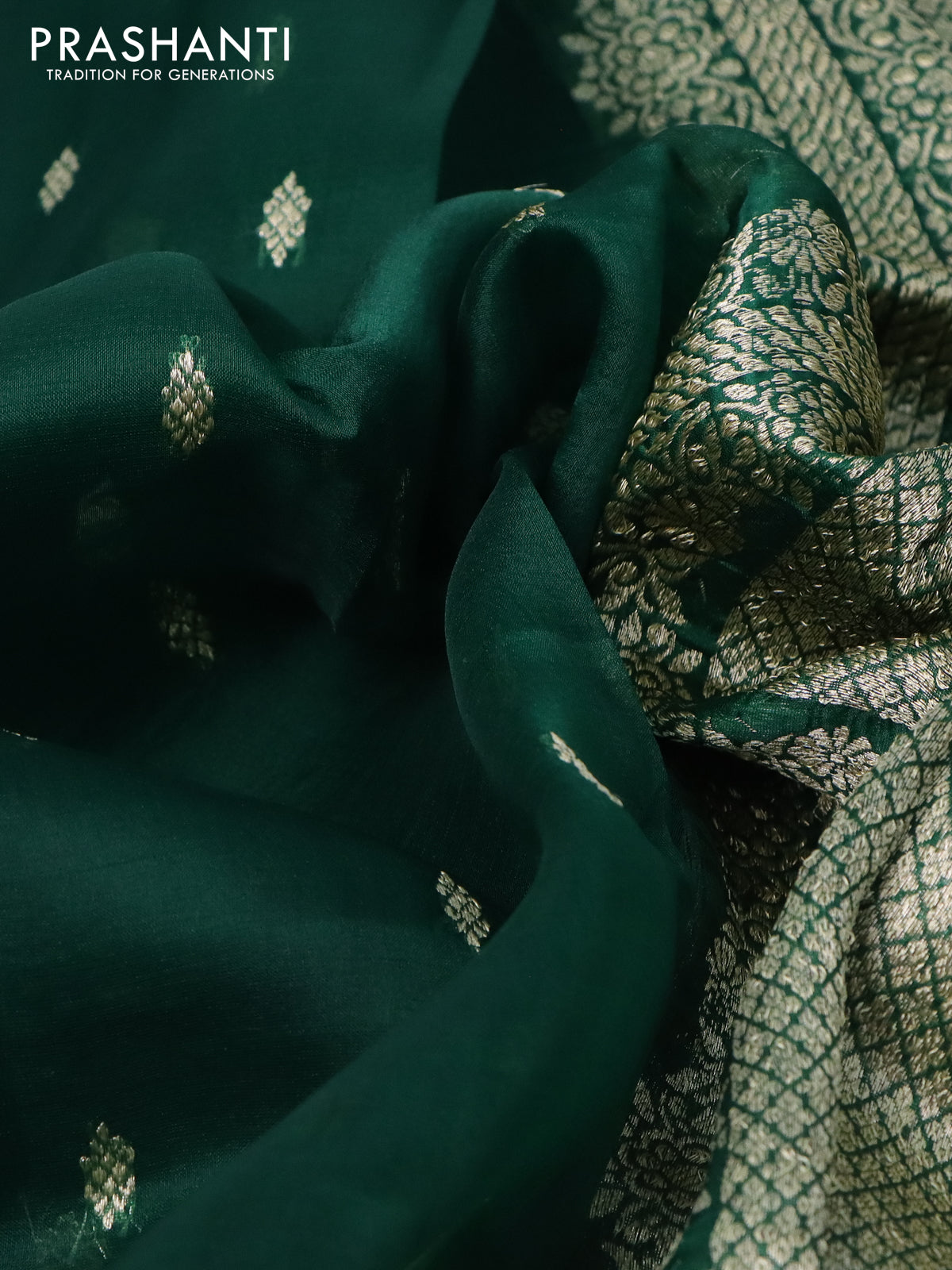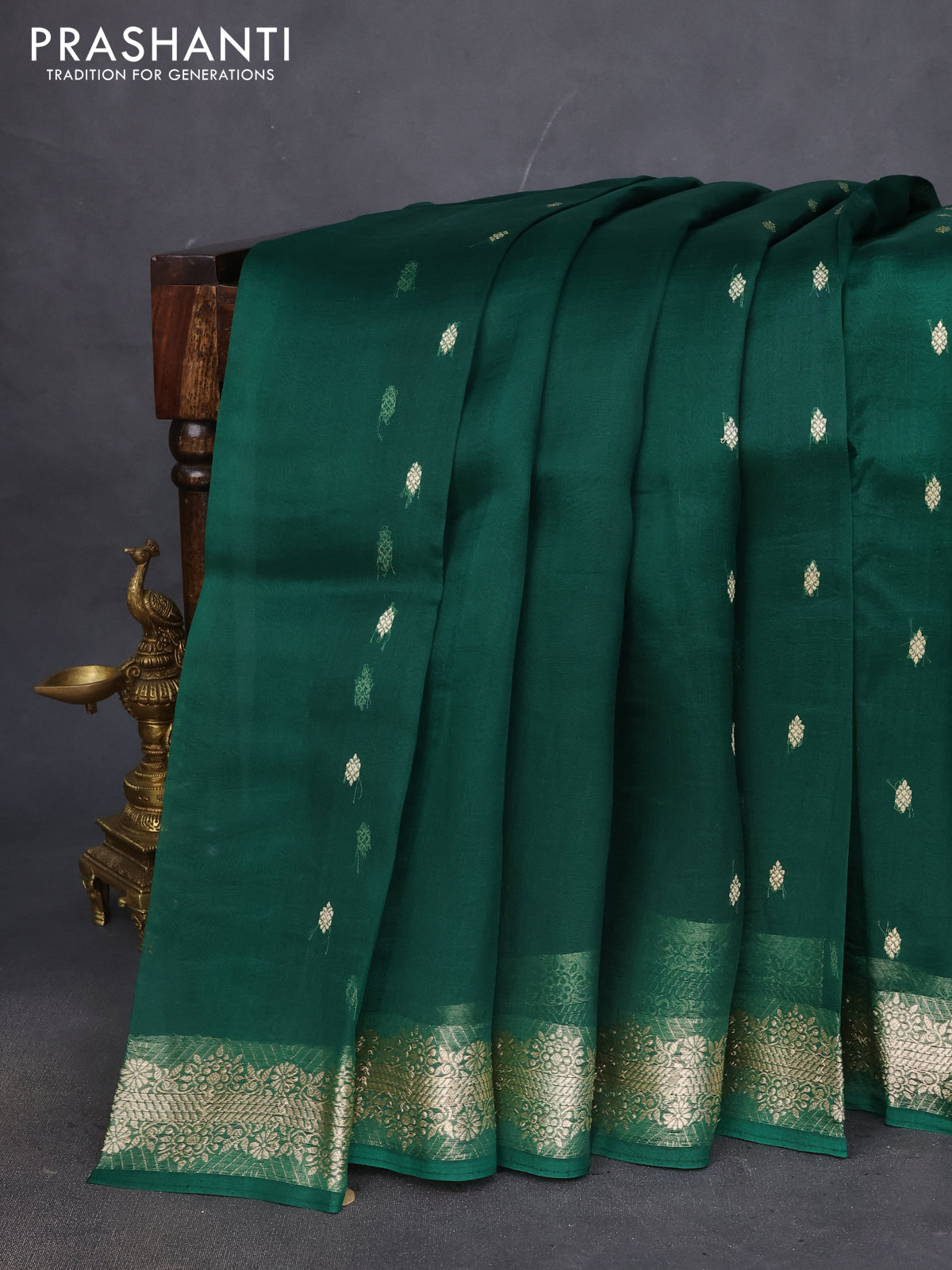 Banarasi organza silk saree green with thread & zari woven buttas and thread & zari woven border
