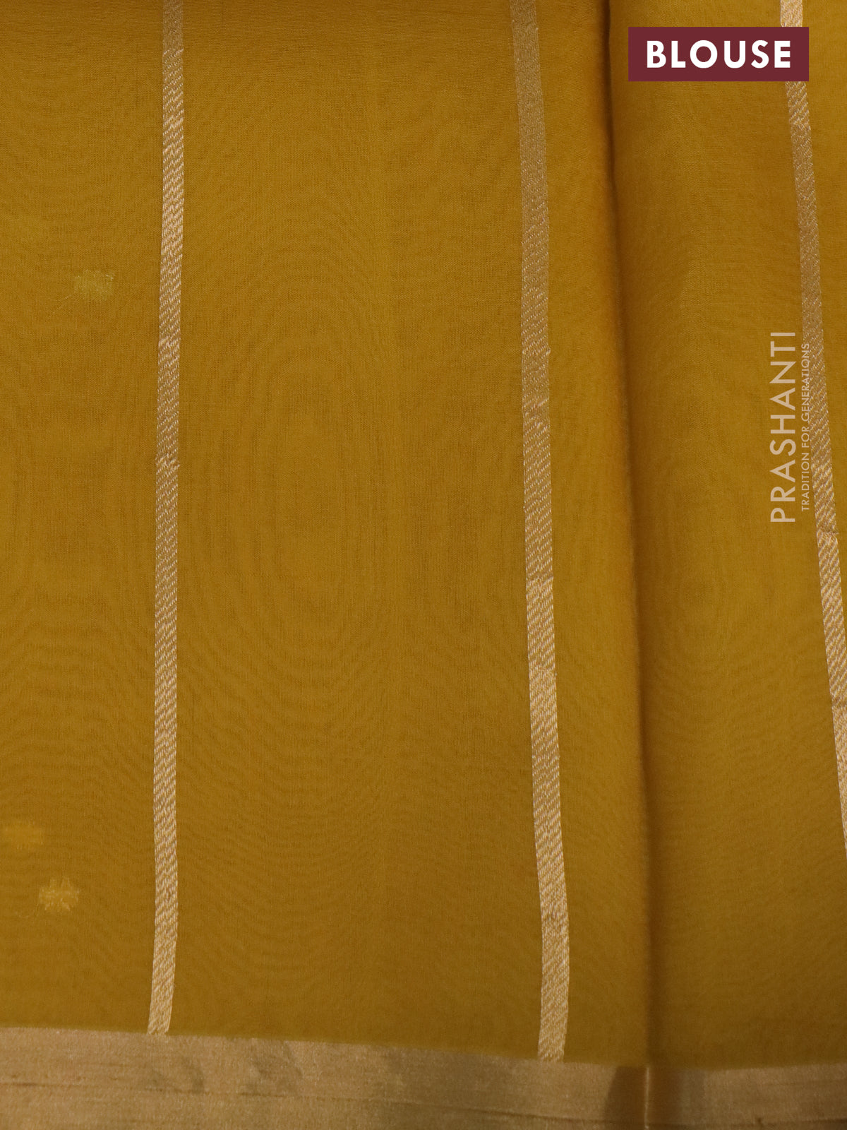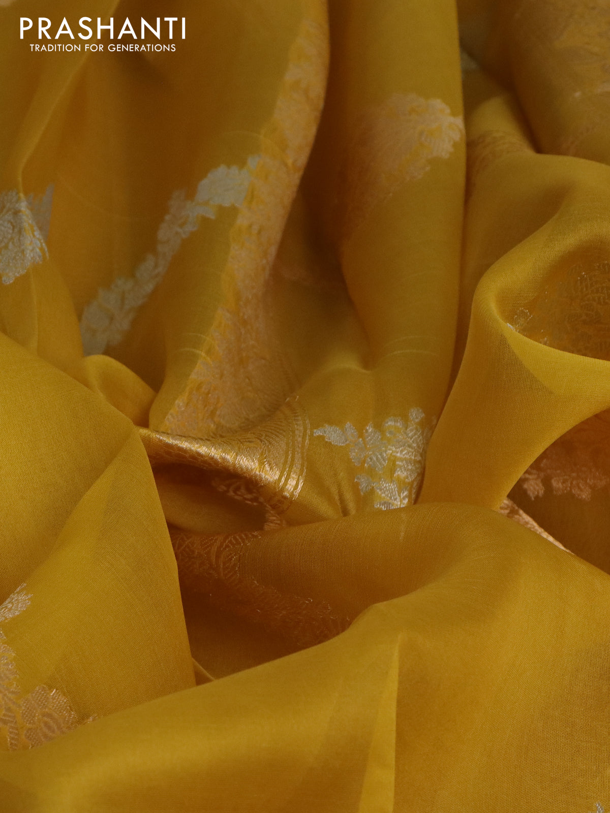 Banarasi organza silk saree mustard yellow with silver & gold zari weaves and zari woven piping border