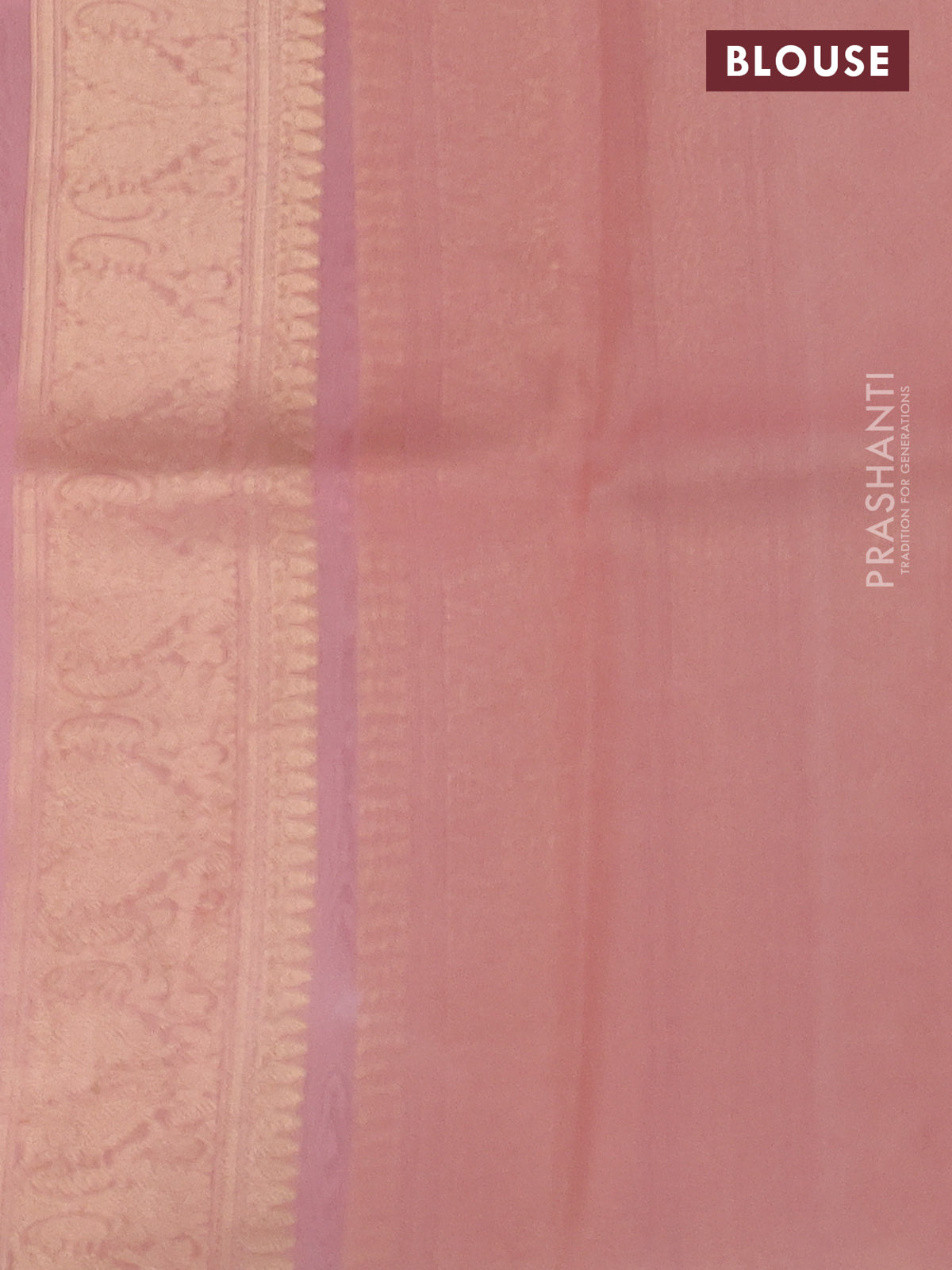 Banarasi organza silk saree peach pink with silver & gold zari weaves and zari woven piping boder