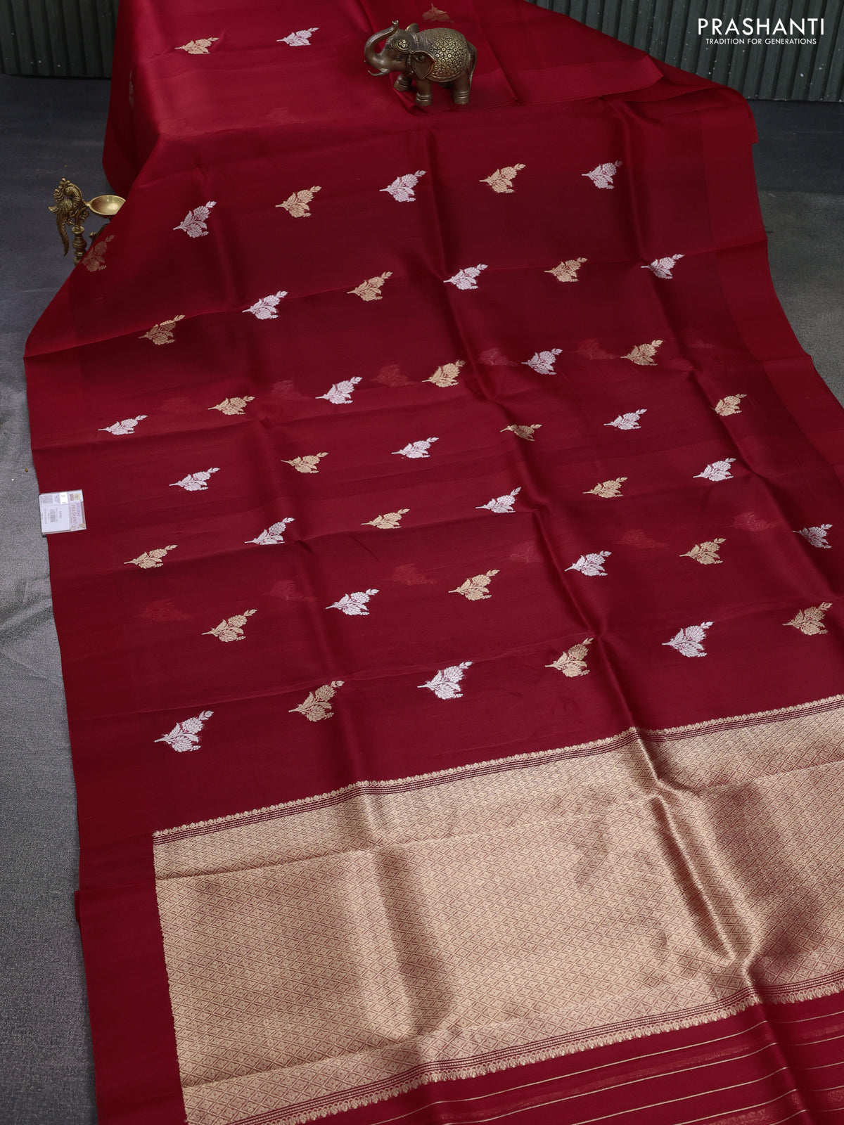 Banarasi organza silk saree red with silver & gold zari woven buttas and simple border