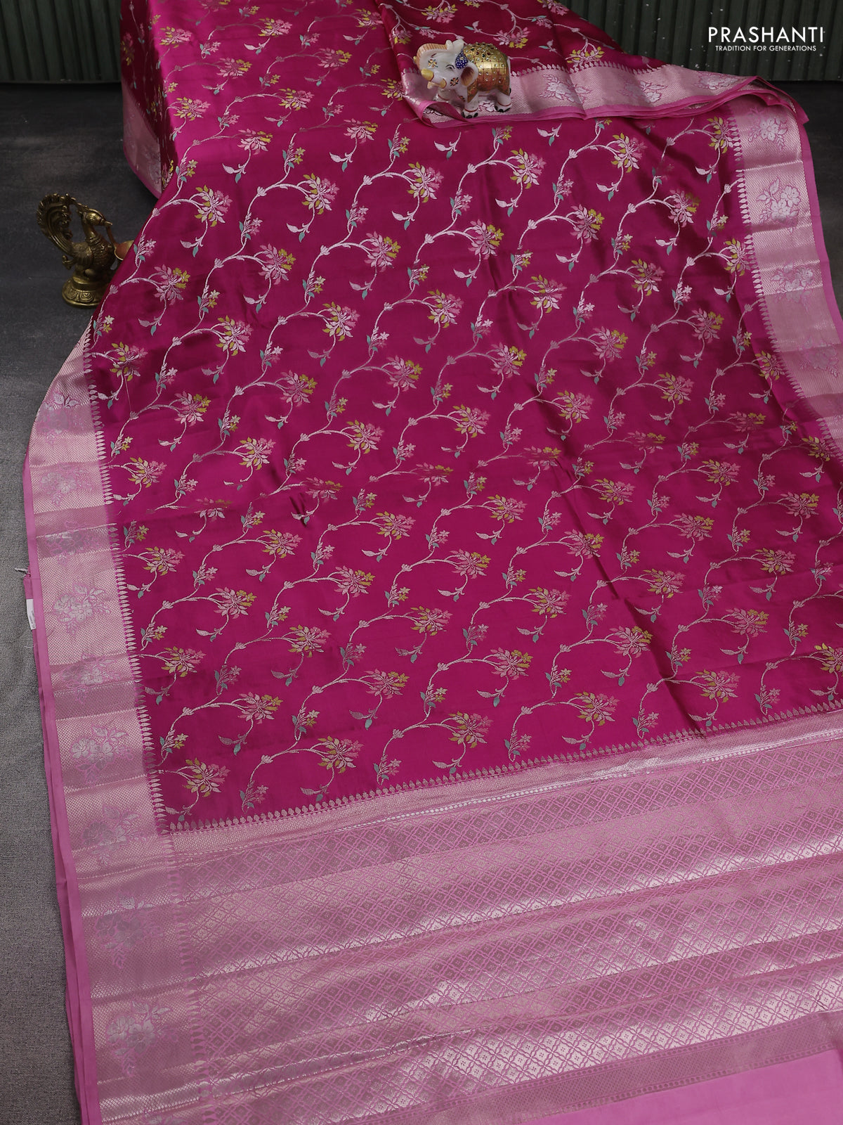 Banarasi poona silk saree dark pink and light pink with allover thread & zari woven floral weaves and zari woven floral border