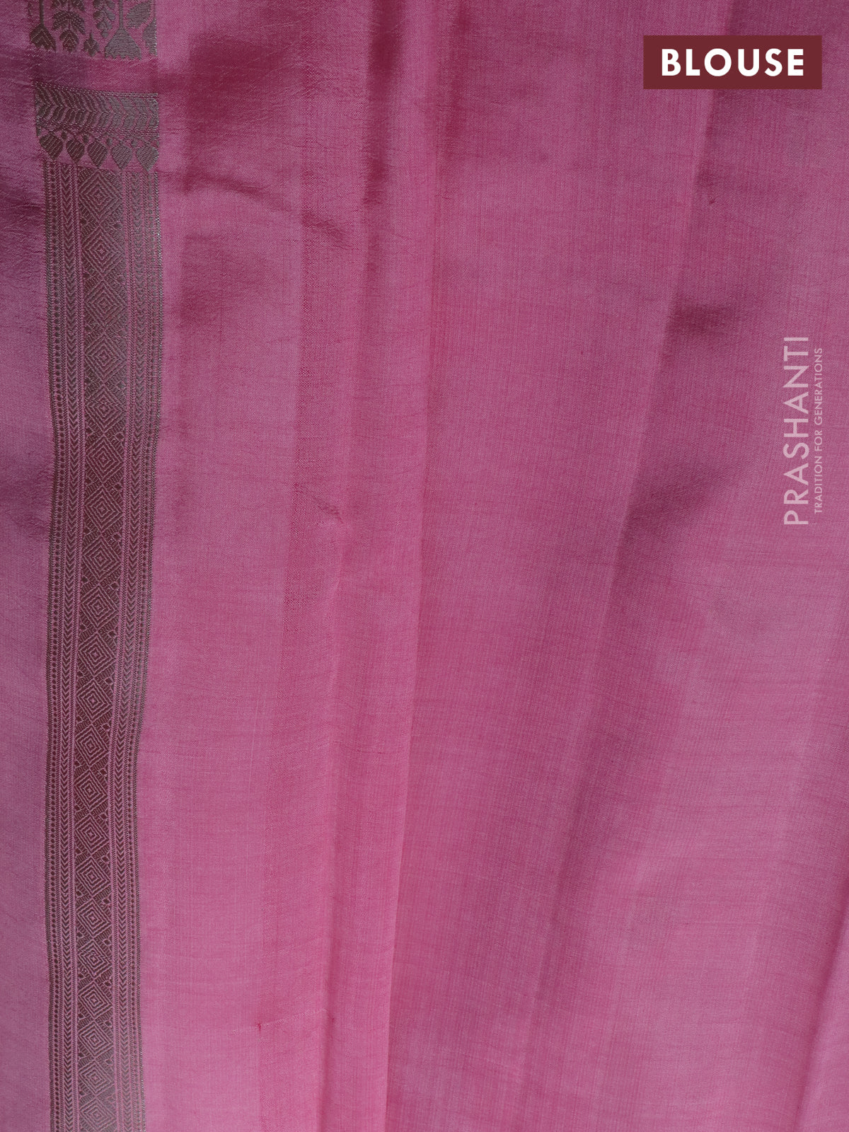 Banarasi poona silk saree dark pink and light pink with silver zari woven buttas and rich zari woven border