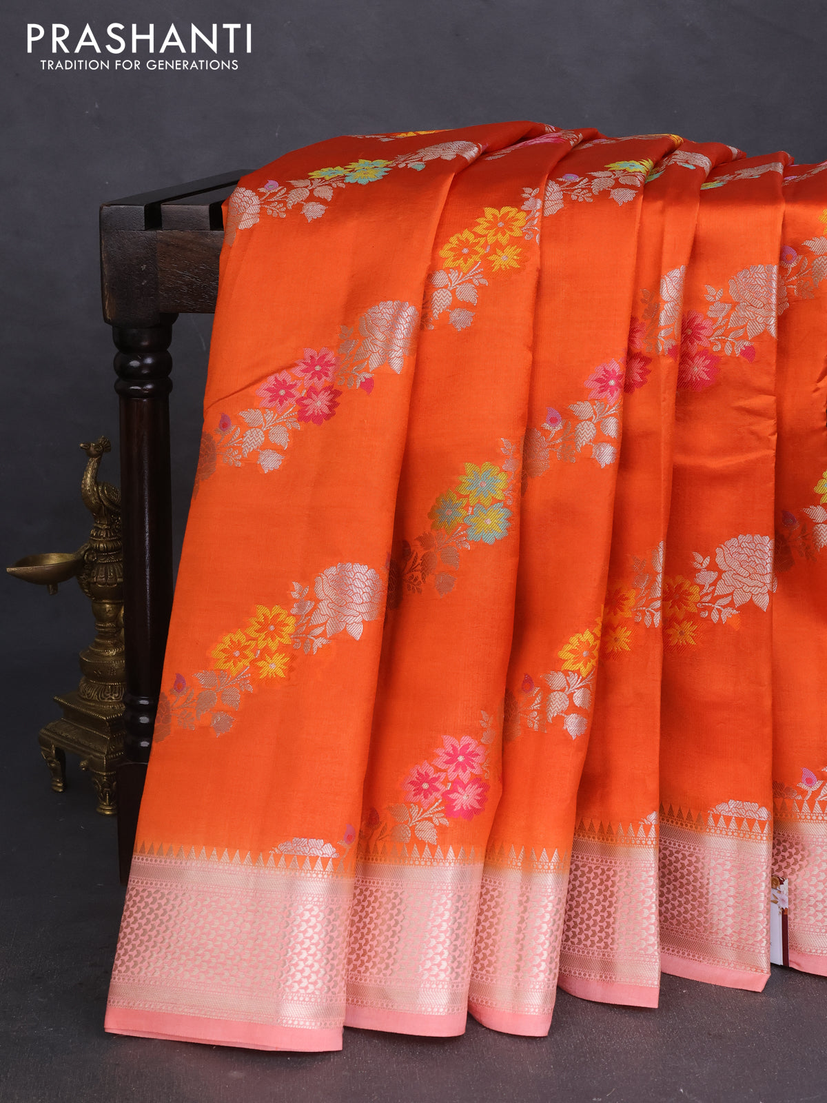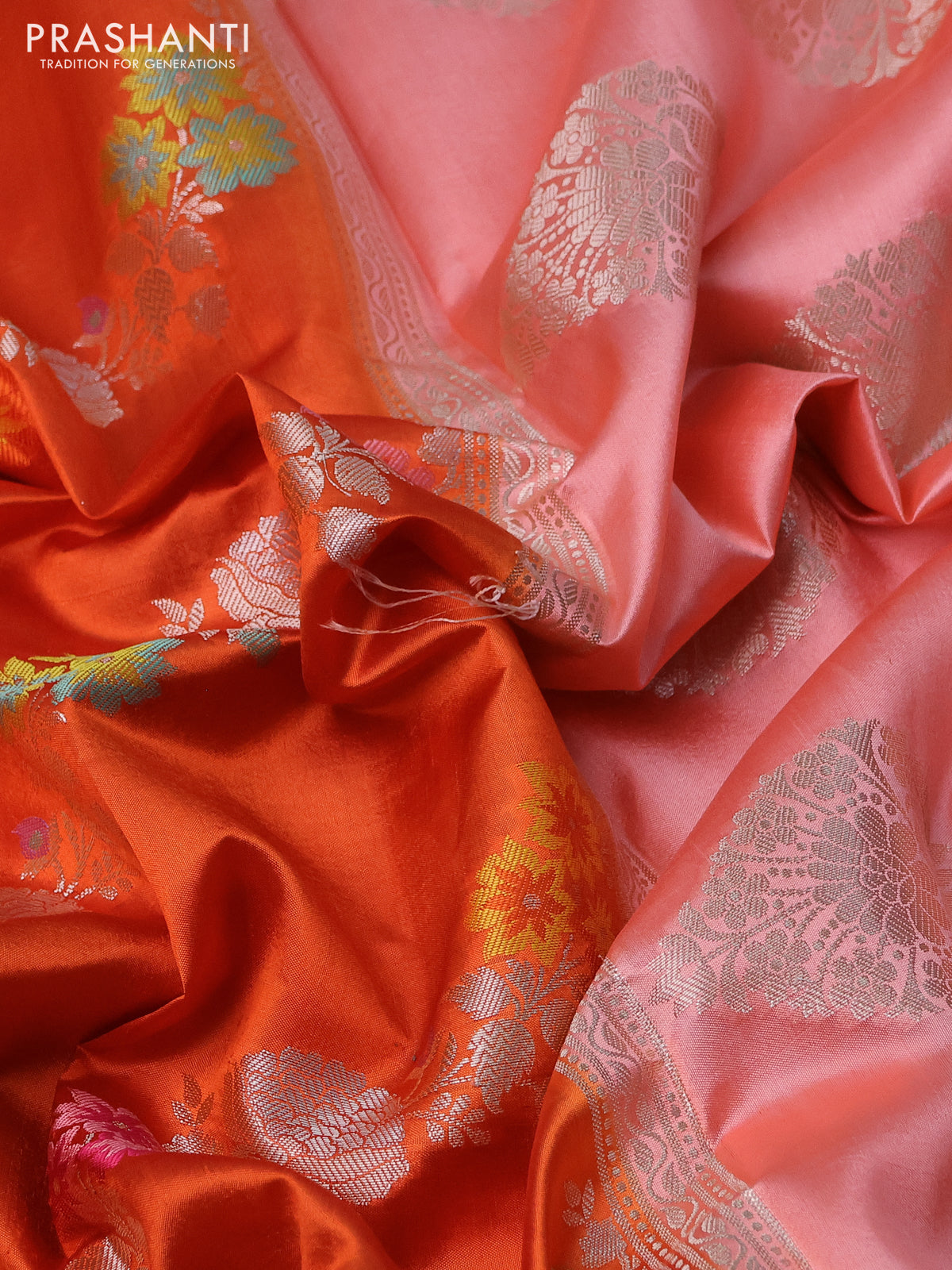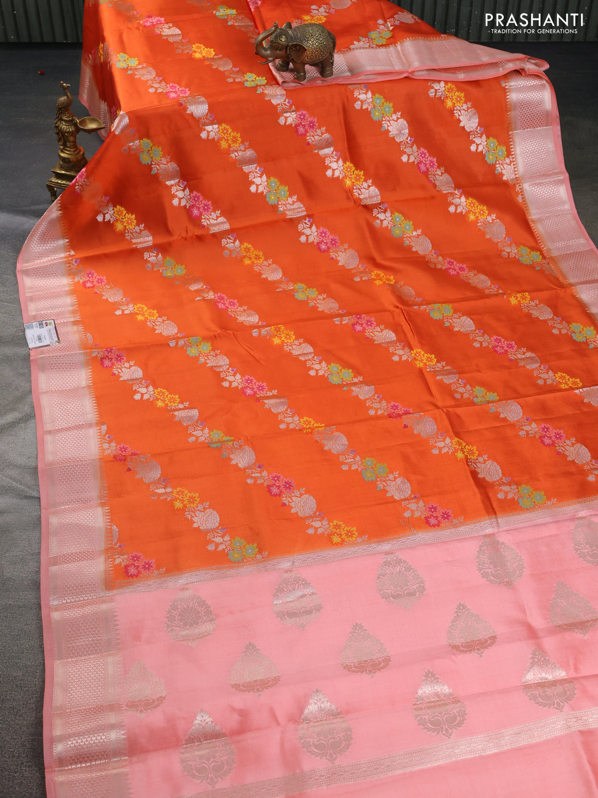 Banarasi poona silk saree orange and peach orange with allover thread & zari floral weaves and zari woven border