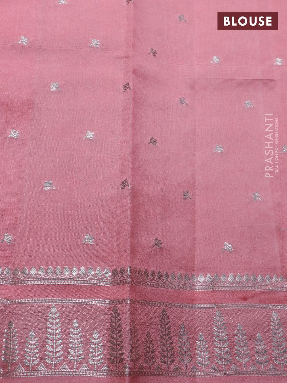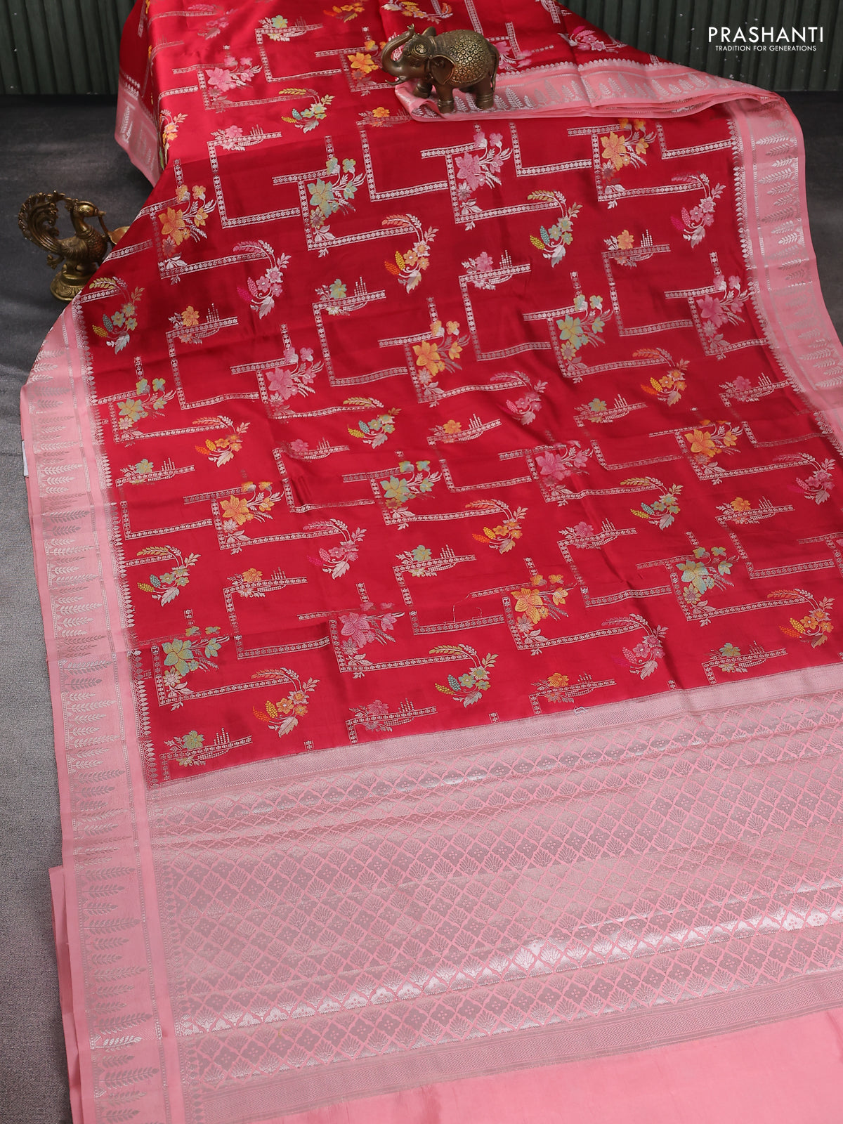 Banarasi poona silk saree red and peach shade with allover thread & silver zari weaves and silver zari woven border