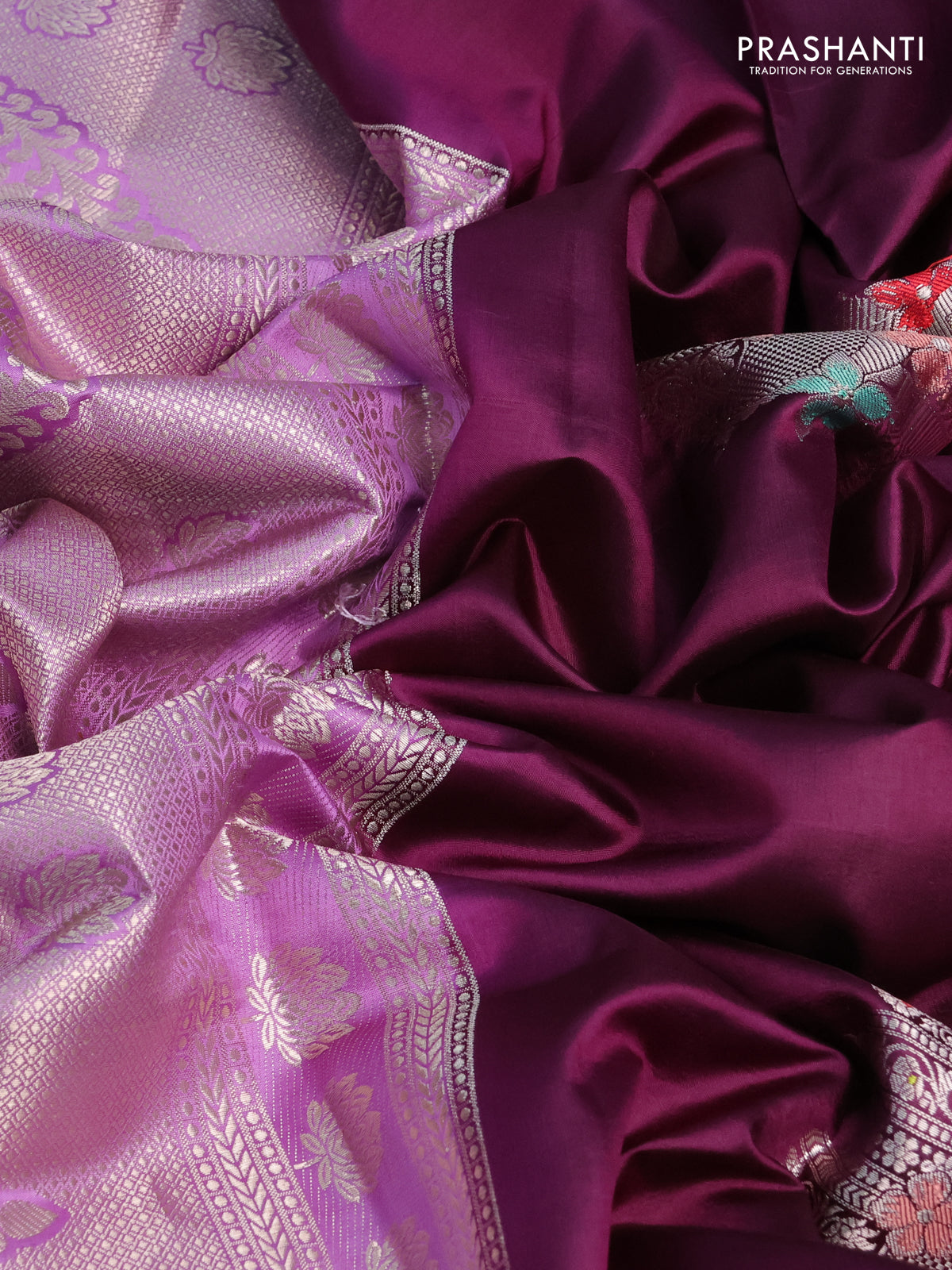 Banarasi poona silk saree wine shade and lavender with thread & zari woven buttas and zari woven border