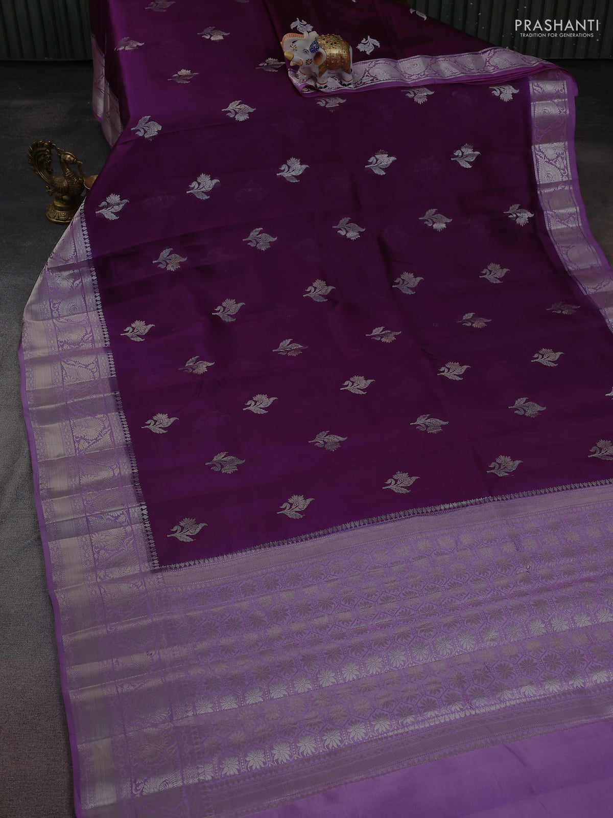 Banarasi poona silk saree wine shade and lavender with zari woven floral buttas and long zari woven border