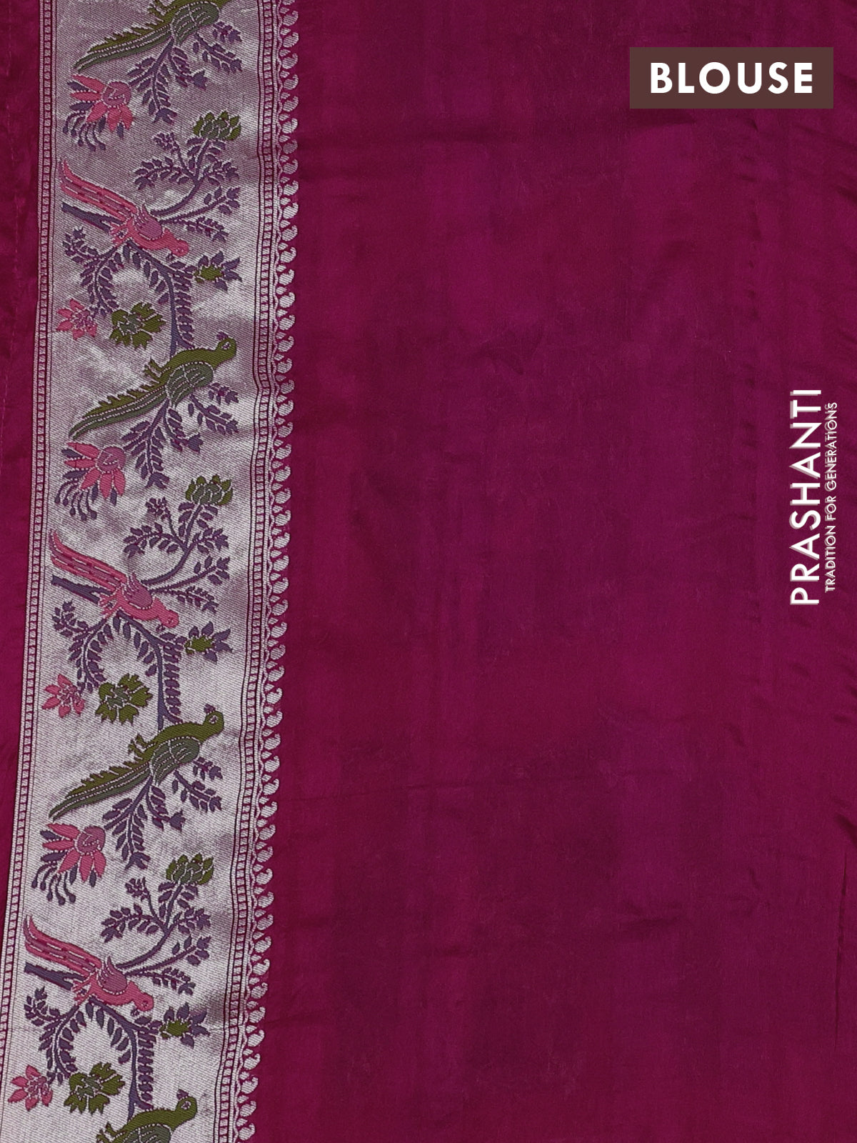 Banarasi raw silk saree dark pink with sillver zari woven coin buttas and silver zari woven paithani style border