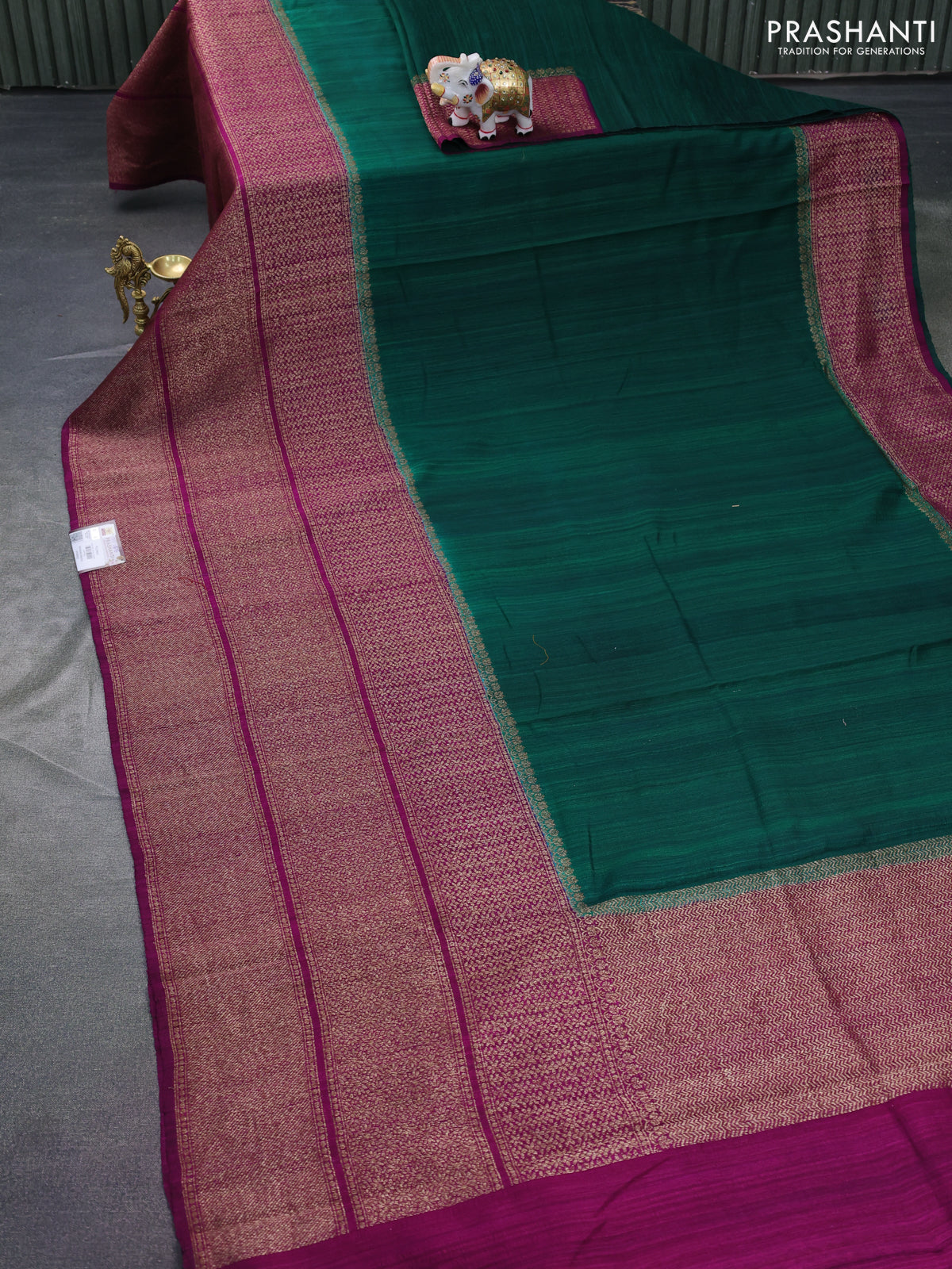 Banarasi raw silk saree green and dark magenta with plain body and long zari woven border