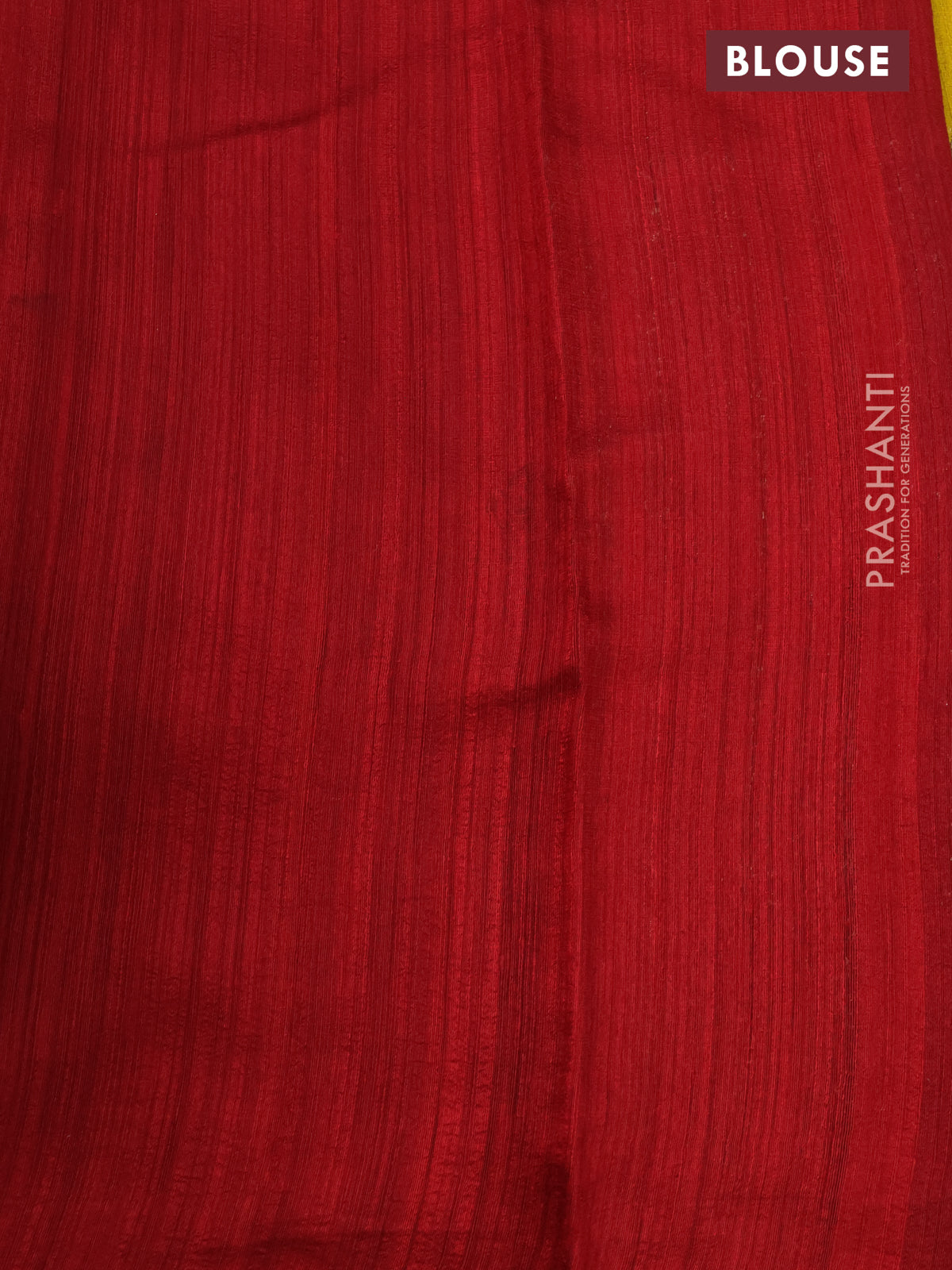 Banarasi raw silk saree mustard yellow and red with plain body and long woven border