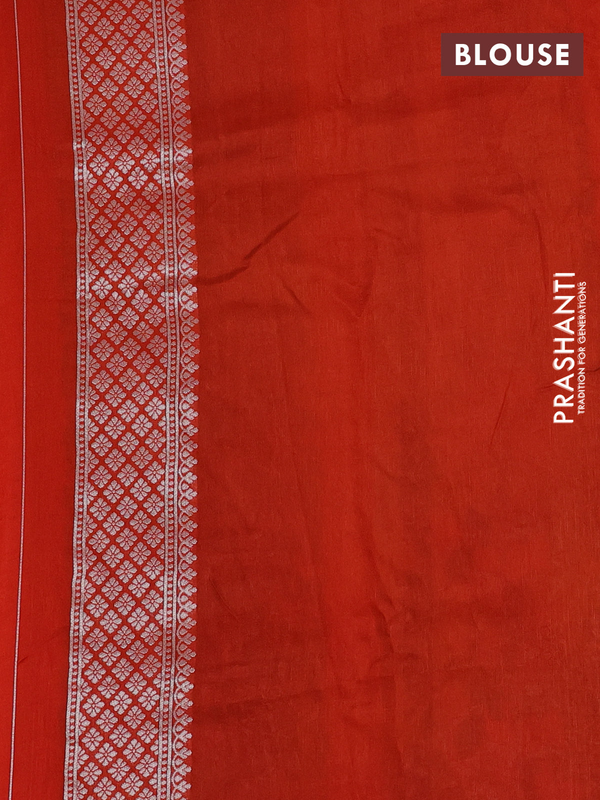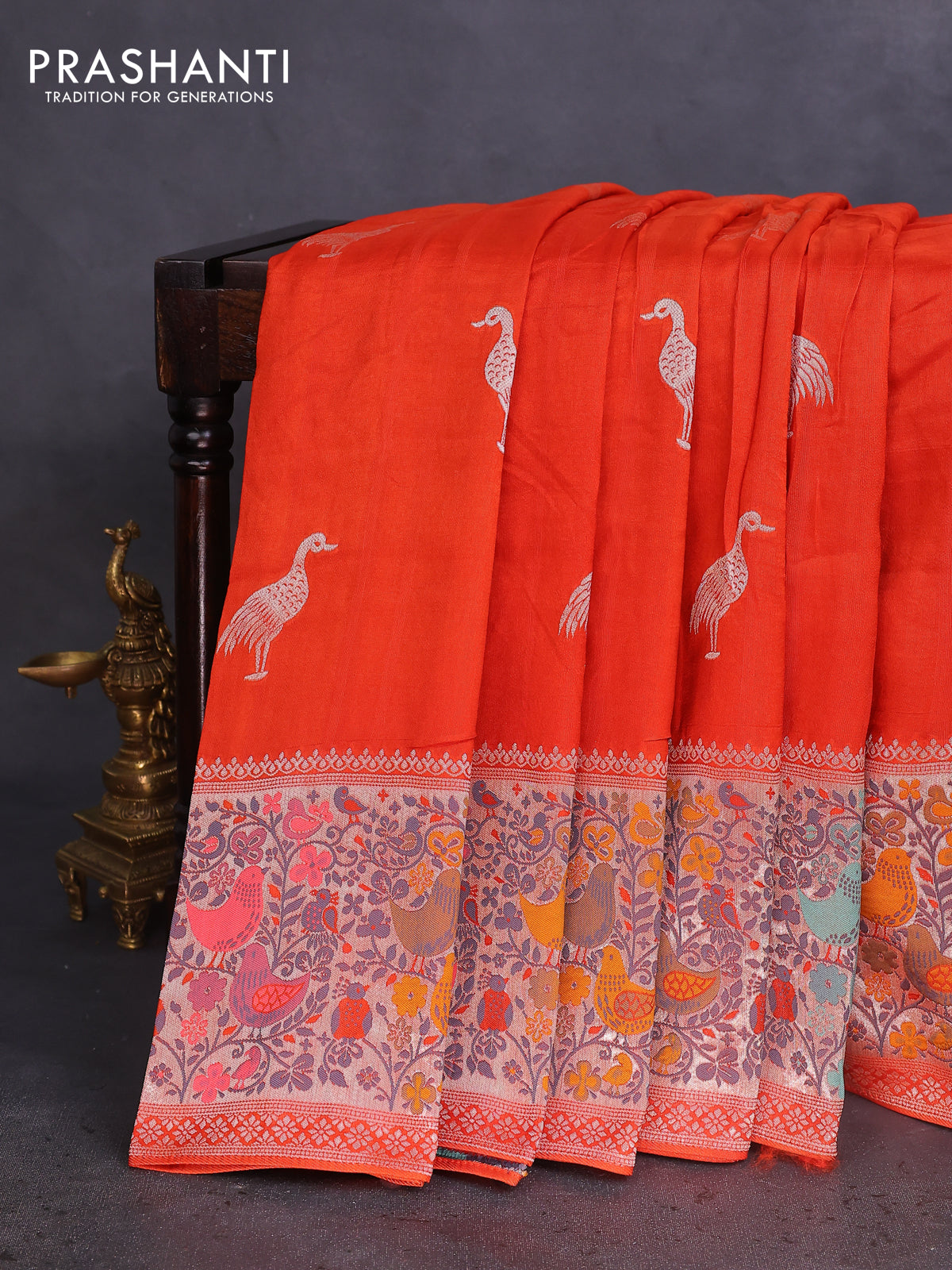 Banarasi raw silk saree orange with silver zari woven buttas and silver zari woven paithani style border