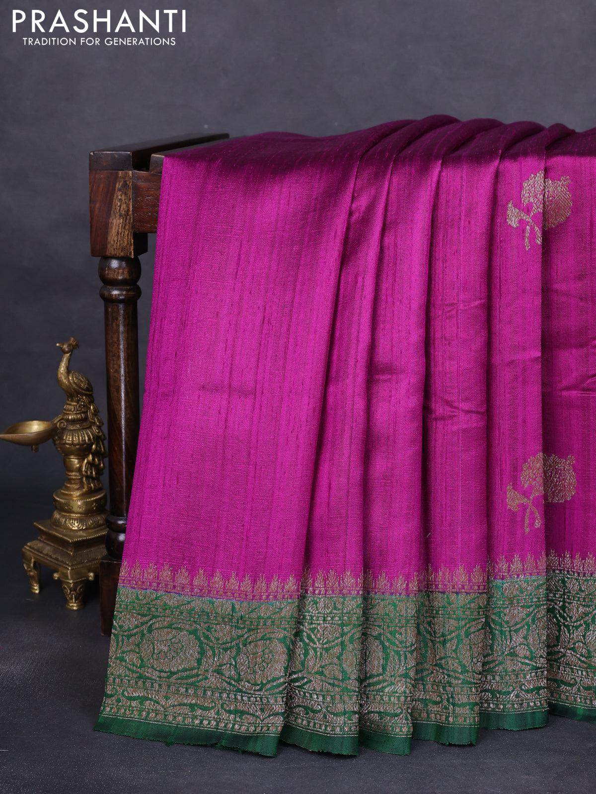 Banarasi raw silk saree purple and green with woven buttas and woven border