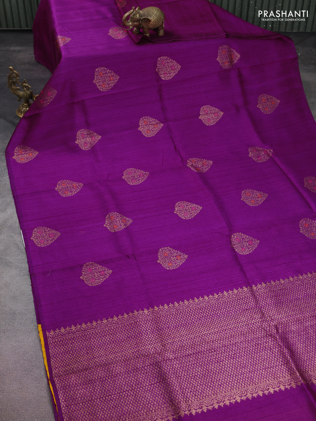 Banarasi raw silk saree purple and mustard yellow with woven buttas in borderless style