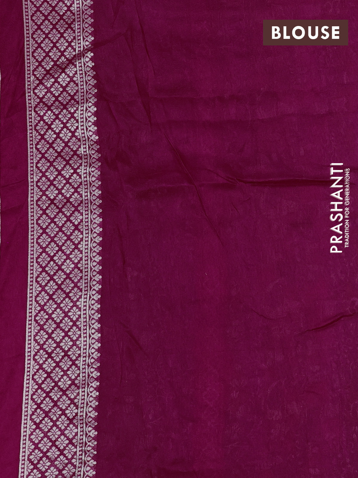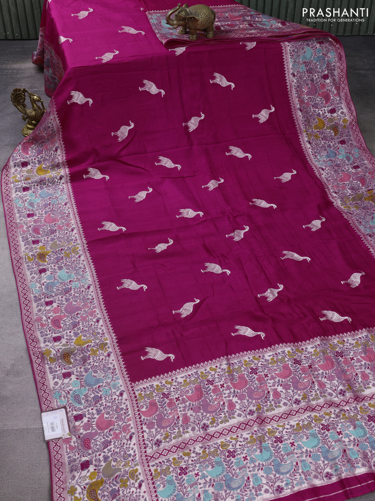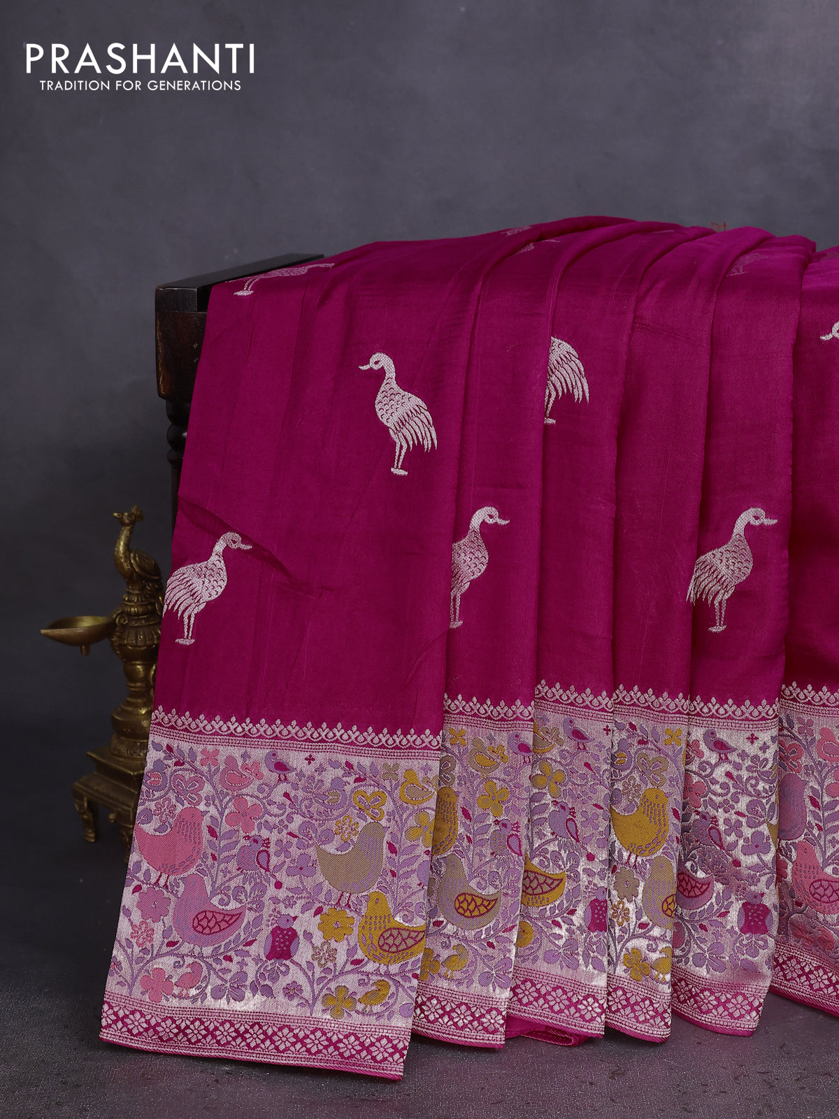 Banarasi raw silk saree rani pink with silver zari woven buttas and silver zari woven paithani style border