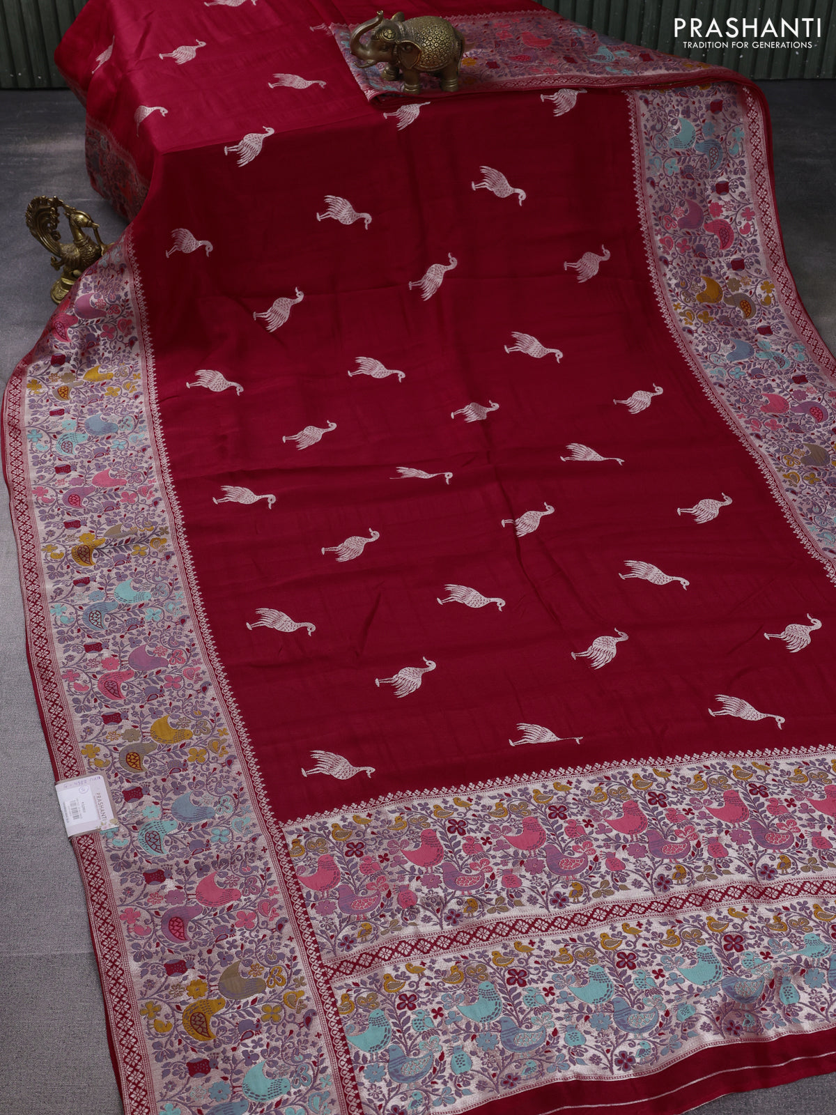 Banarasi raw silk saree red with silver zari woven buttas and silver zari woven paithani style border