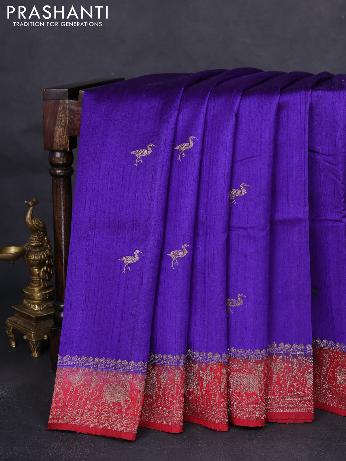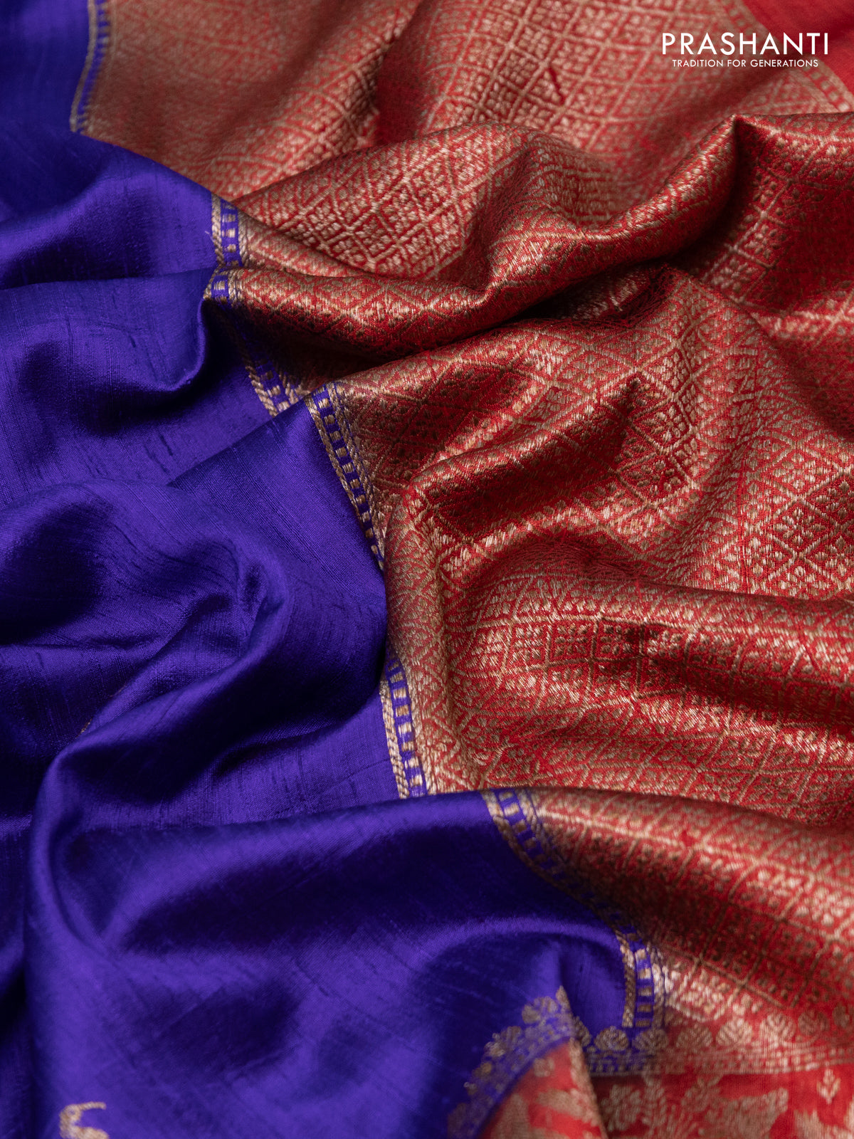 Banarasi raw silk saree royal blue and maroon with woven buttas and woven border