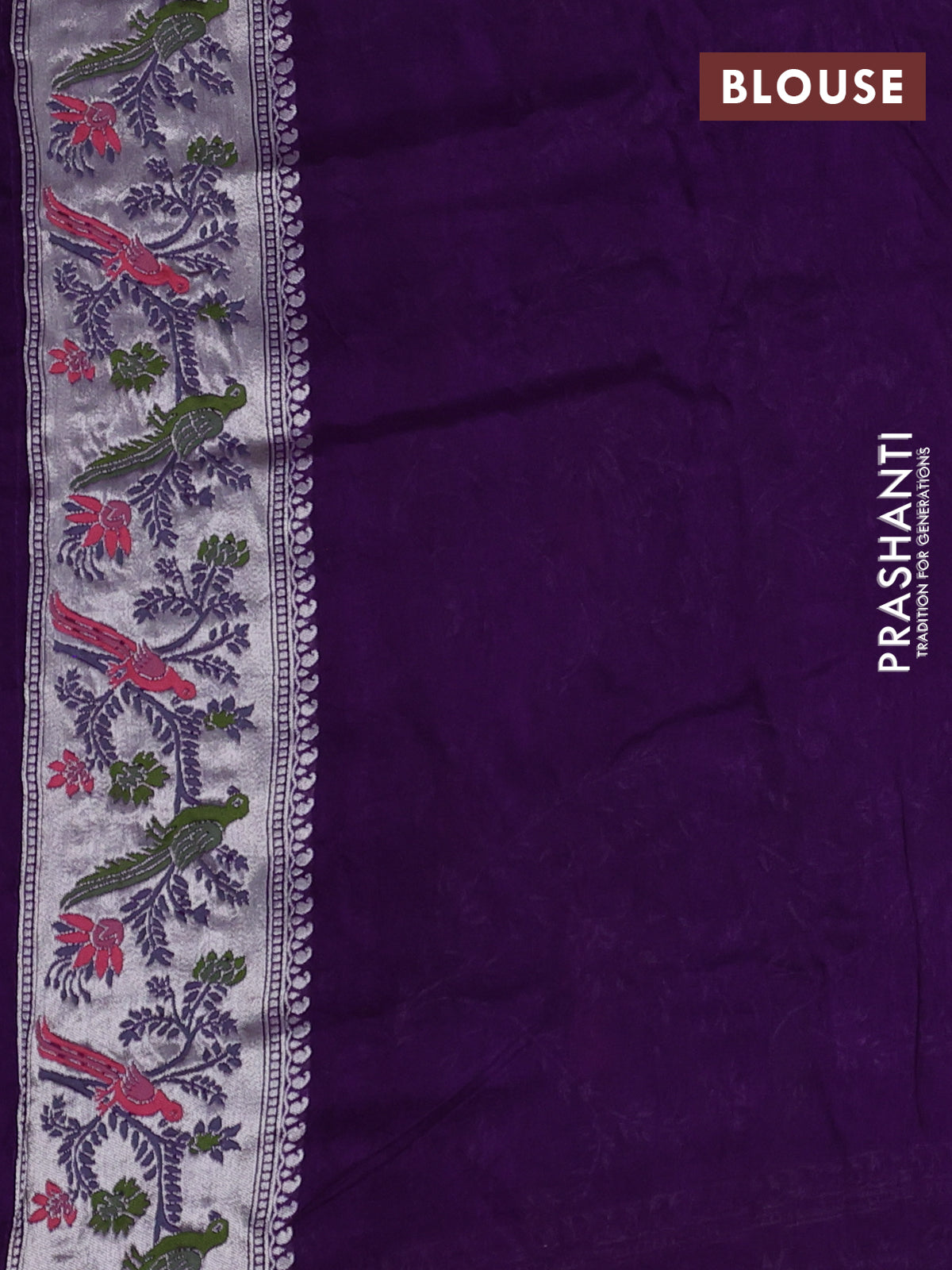 Banarasi raw silk saree violet with sillver zari woven coin buttas and silver zari woven paithani style border