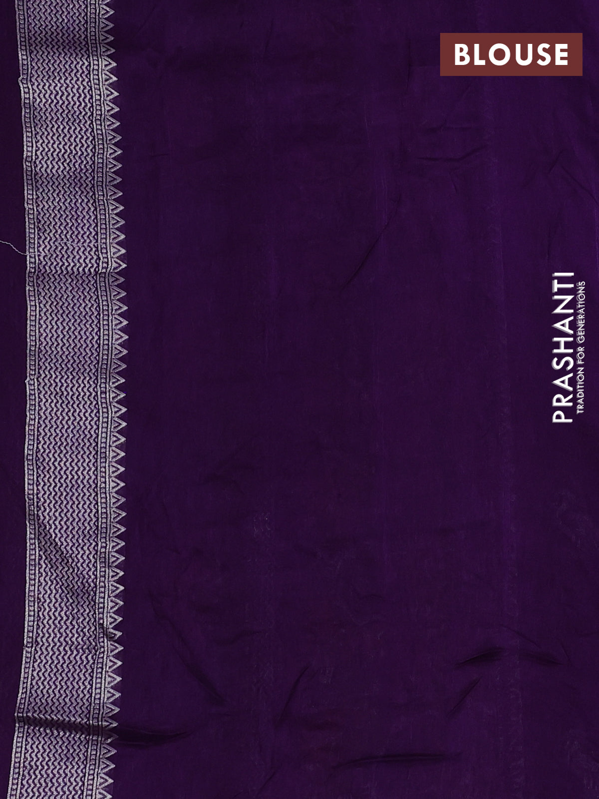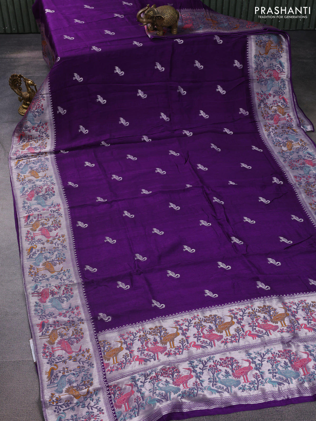Banarasi raw silk saree violet with silver zari woven buttas and silver zari woven paithani style border