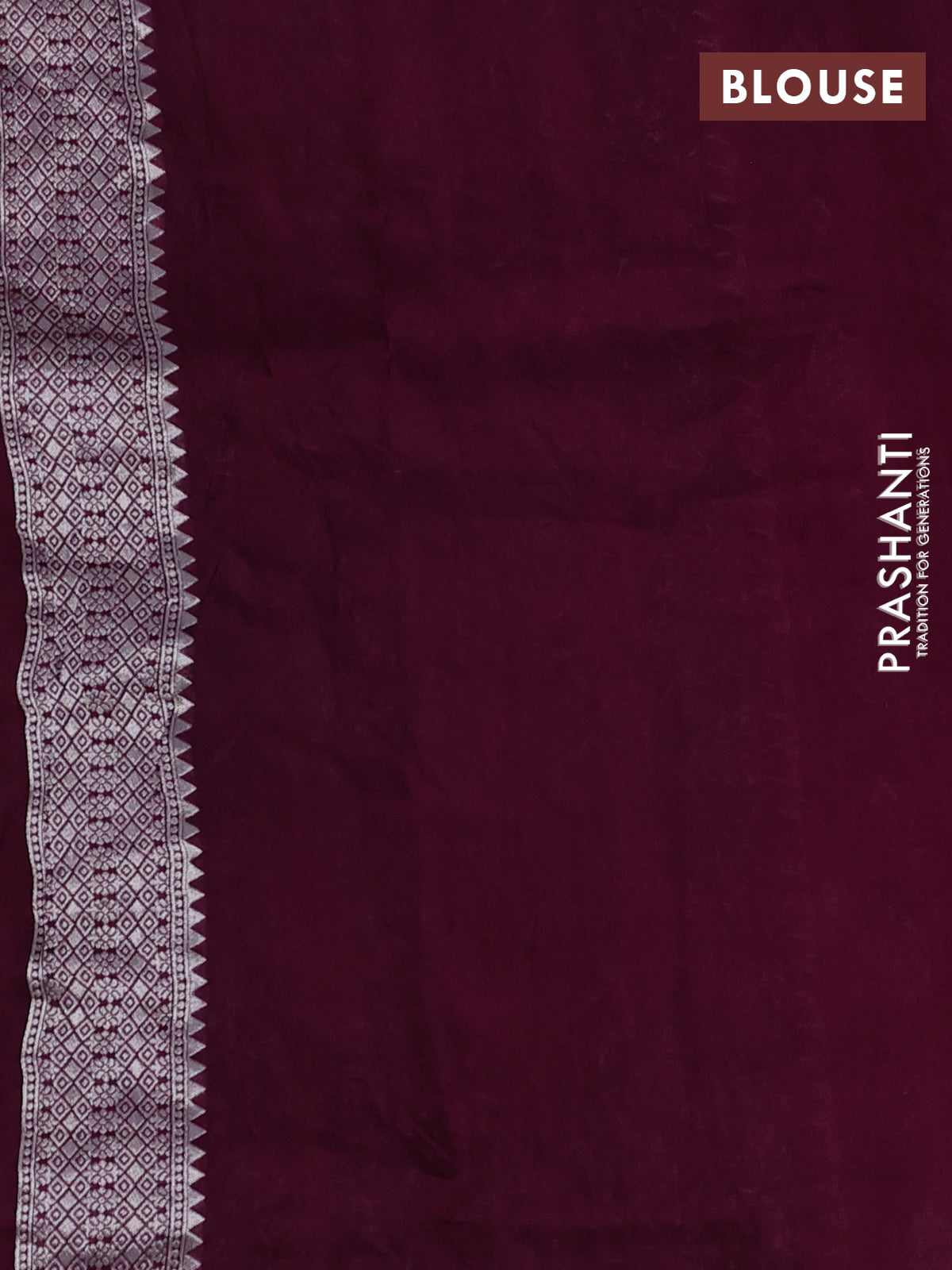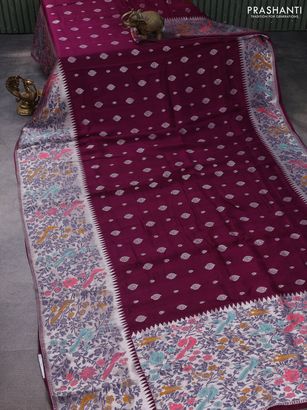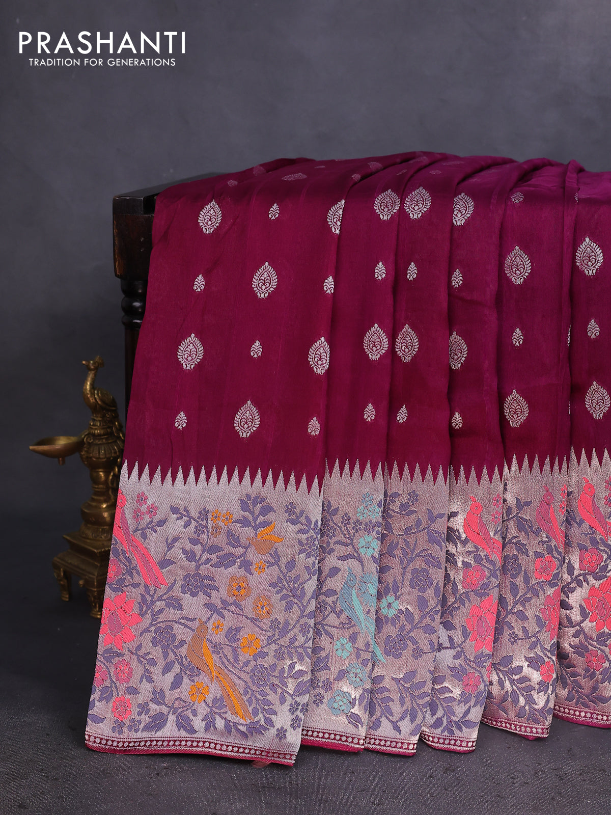 Banarasi raw silk saree wine shade with silver zari woven buttas and silver zari woven paithani style border
