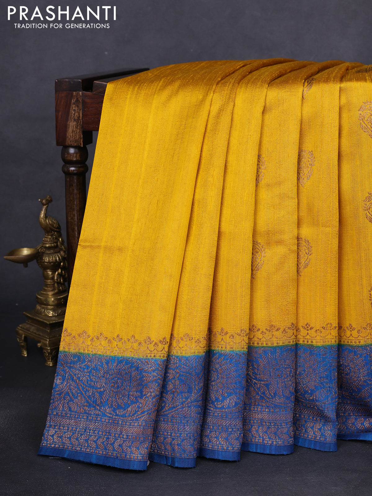 Banarasi raw silk saree yellow and peacock blue with woven buttas and woven border