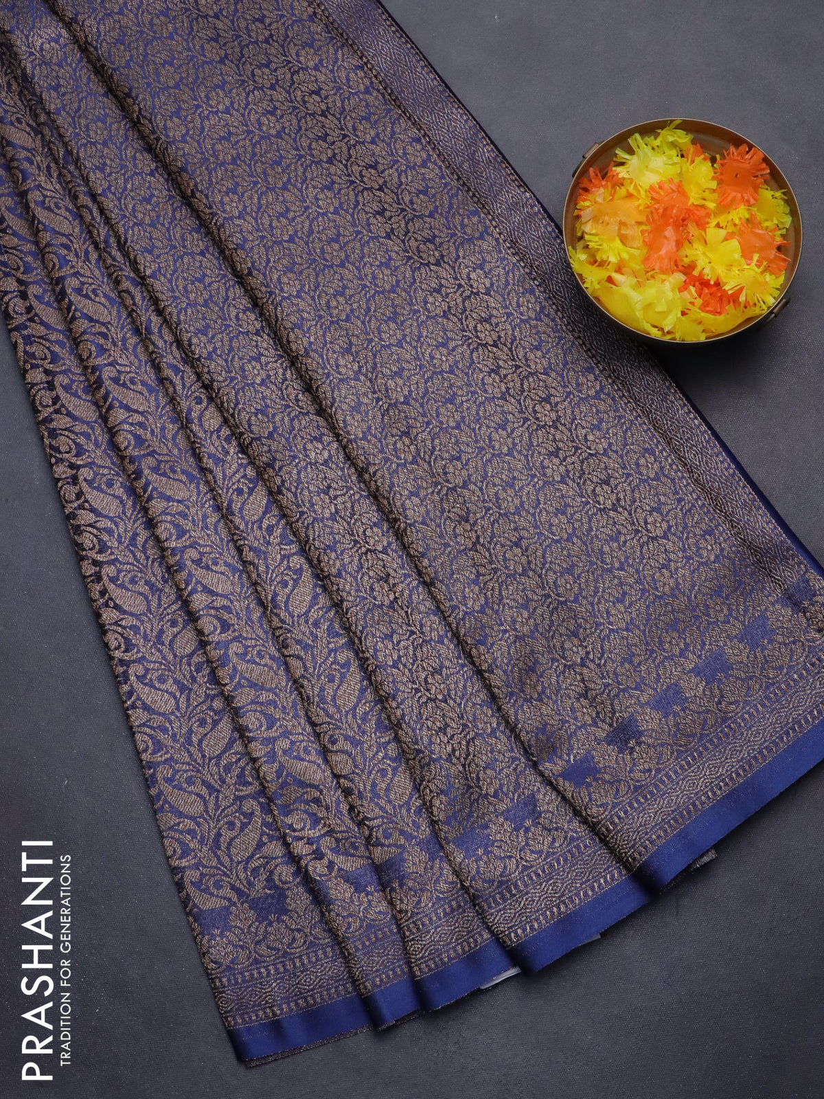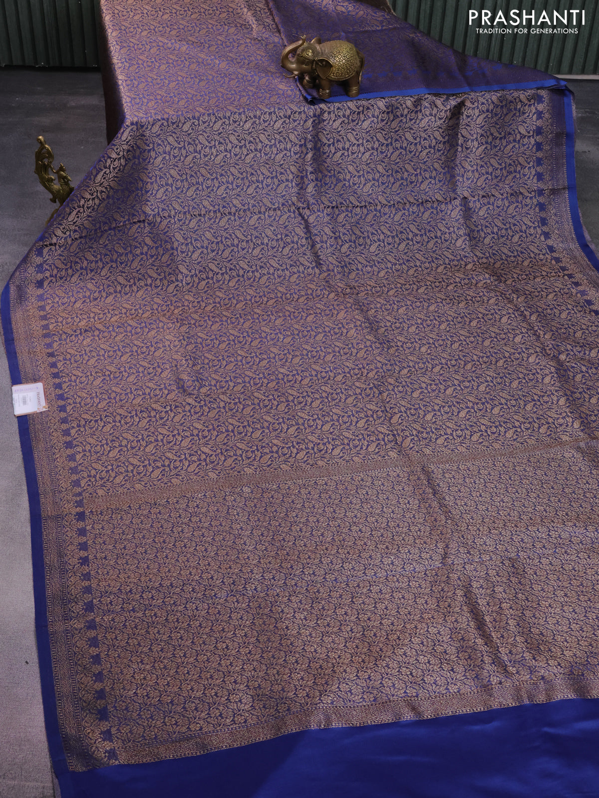 Banarasi semi crepe saree blue with allover thread & zari woven brocade weaves and woven border