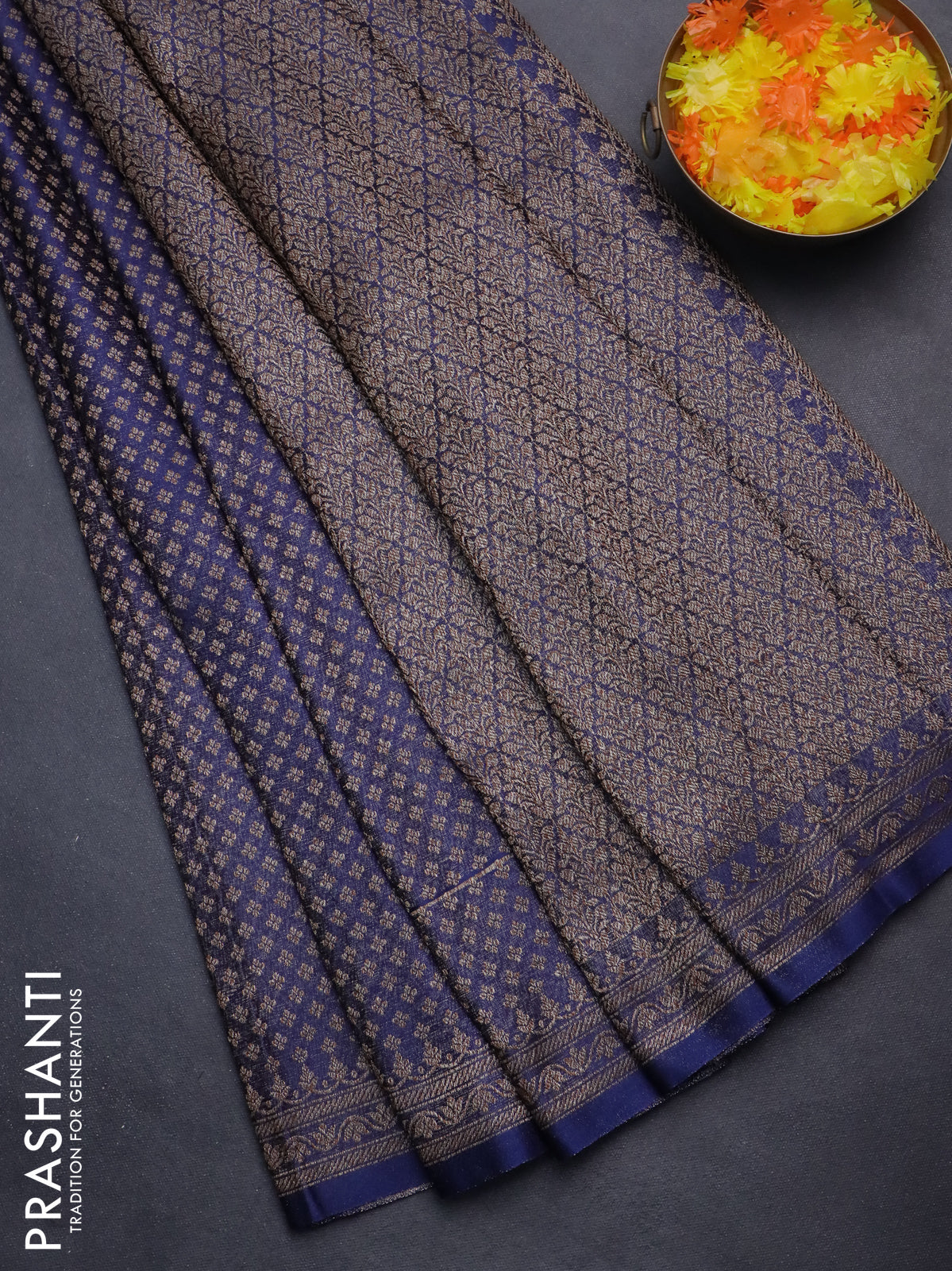 Banarasi semi crepe saree blue with allover thread & zari woven brocade weaves and woven border