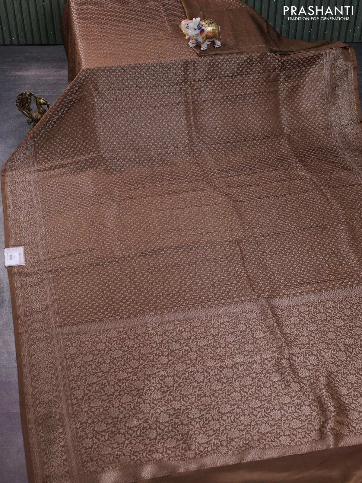 Banarasi semi crepe saree brown with allover thread & zari woven brocade weaves and woven border
